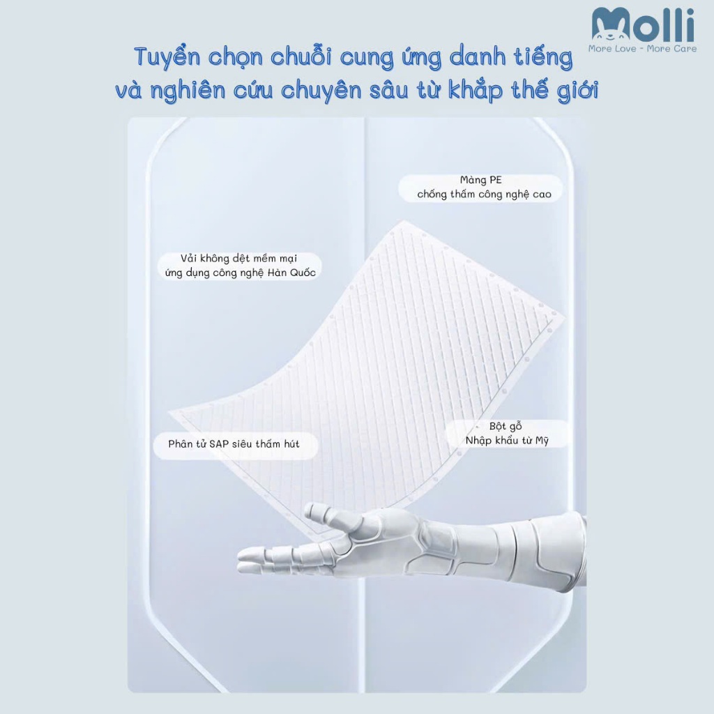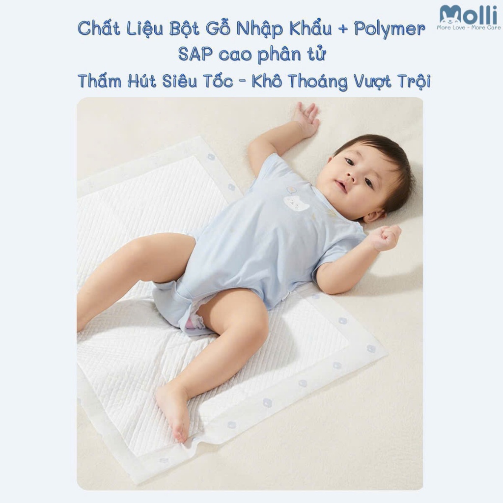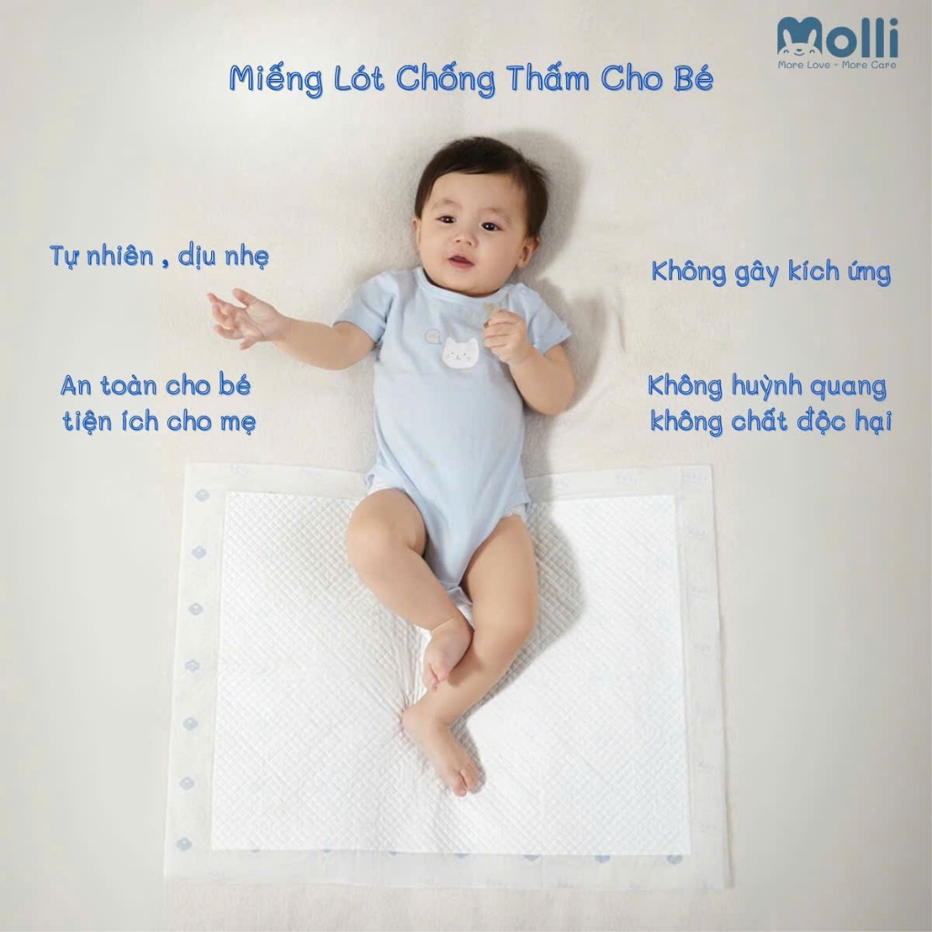 Tấm Lót Chống Thấm Dùng Một Lần Molli Cho Bé Nằm, Thay Tã, Chống Tràn, Êm Ái