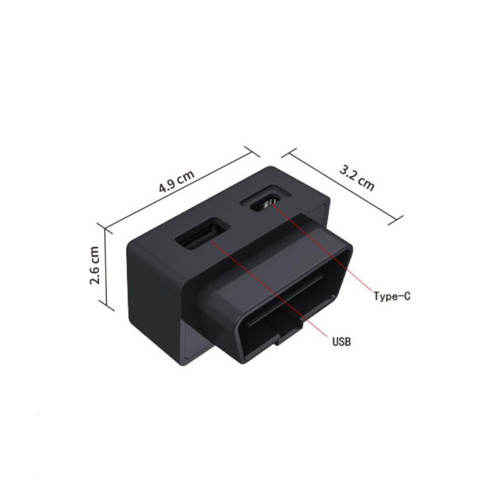 WANGMCAI Obd Adapter Sạc, Bộ Chuyển Đổi Tường Hai Đầu Sạc Ô Tô Obd, Bộ Chuyển Đổi Nguồn USB Type-C Obd Sạc Nhanh Cổng Cắm Obd Mở Rộng Mẫu Xe 3