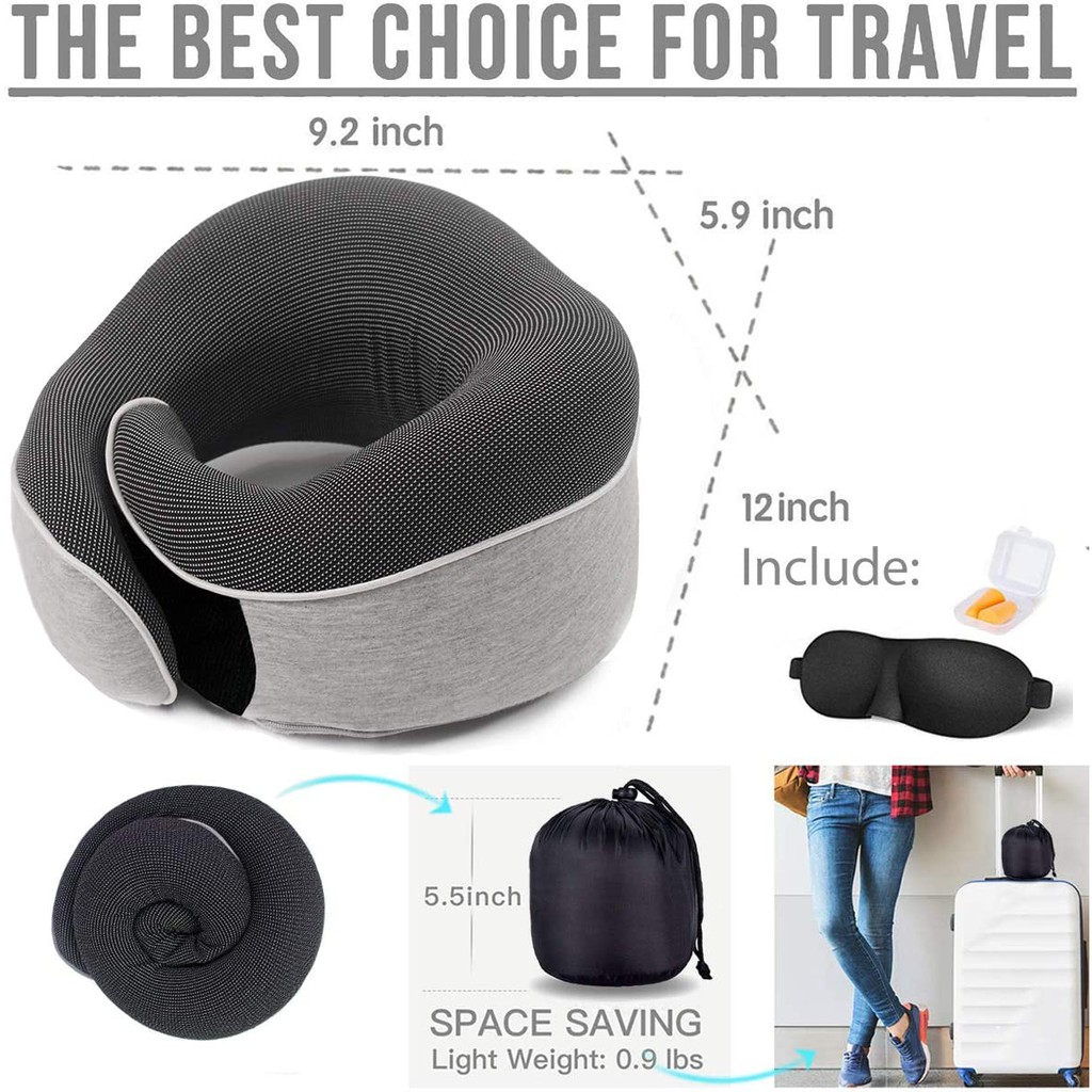 Gối Tựa Cổ Bằng Memory Foam Kèm Mặt Nạ Mắt Và Nút Bịt Tai Dùng Khi Đi Máy Bay / Xe Hơi / Văn Phòng
