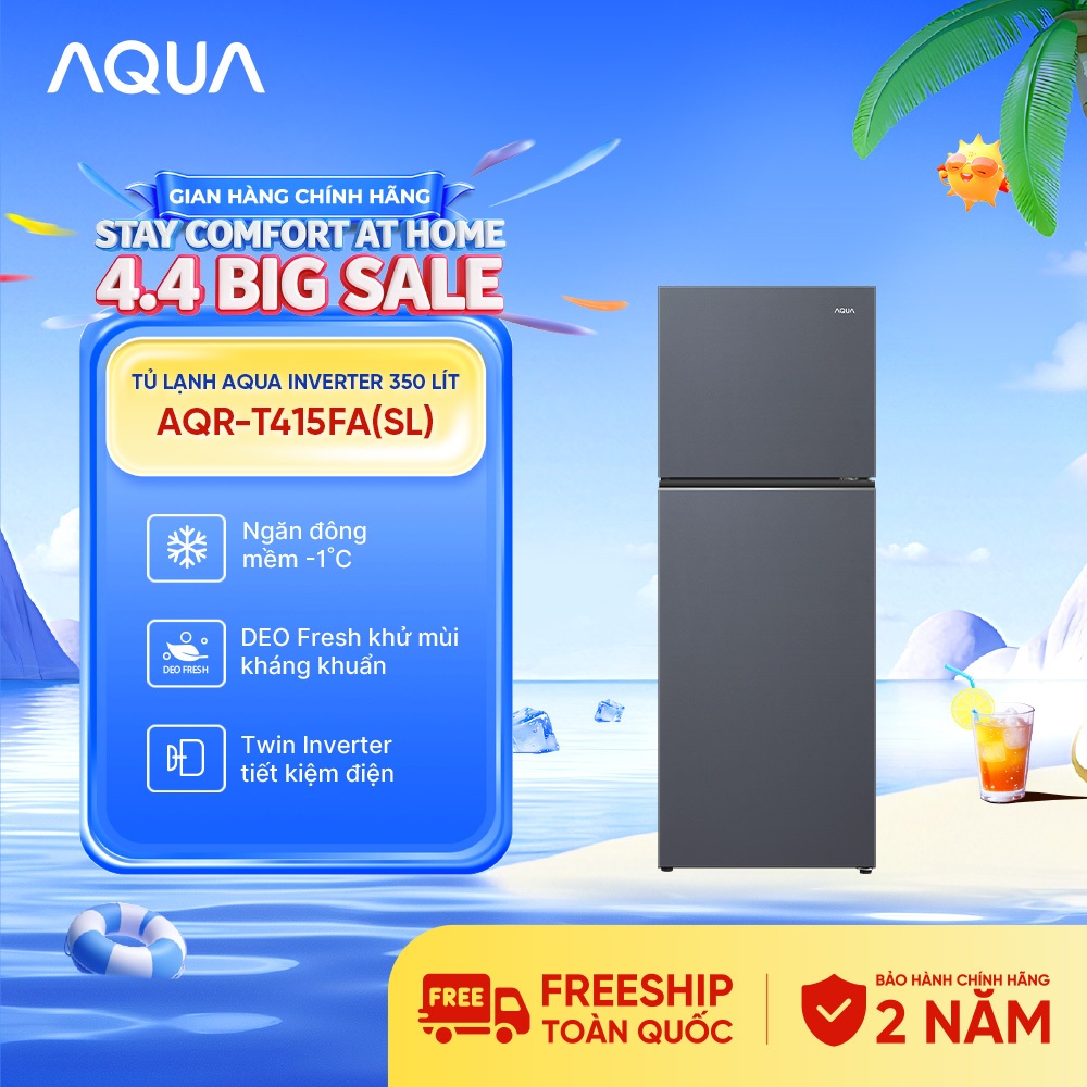 Tủ lạnh Inverter ngăn đông trên Aqua 350 Lít AQR-T415FA(SL) - Bảo h ành 2 năm - Freeship - Ngăn đông mềm -1˚C