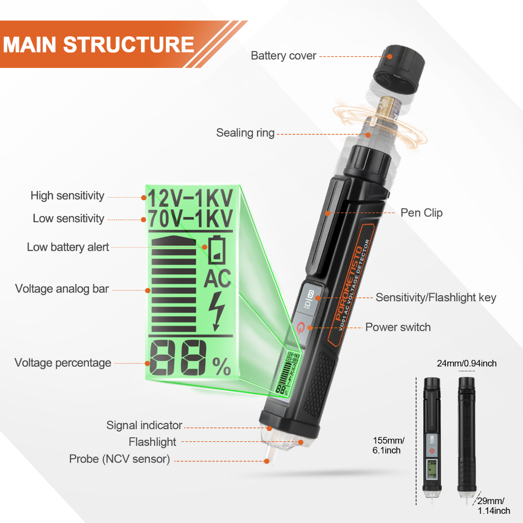Thiết Bị Kiểm Tra Điện áp Bút Thử phát hiện VD01 cảm biến chính xác chất lượng cao ac12-1000v không liên lạc điện áp thử nghiệm độ nhạy có thể điều chỉnh