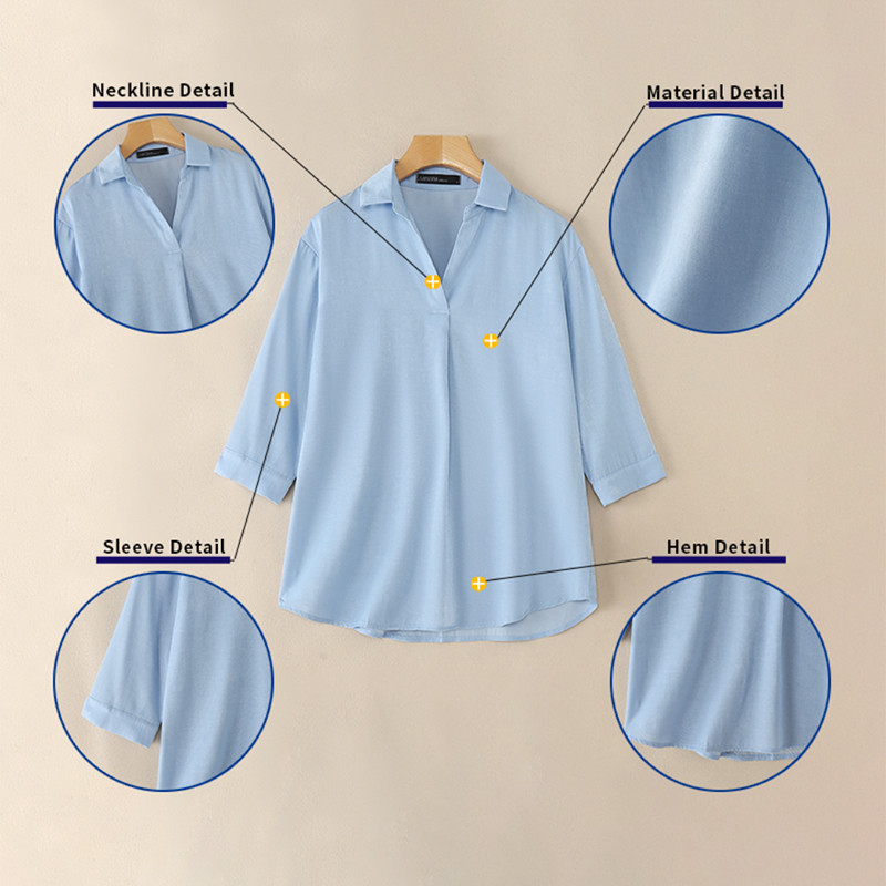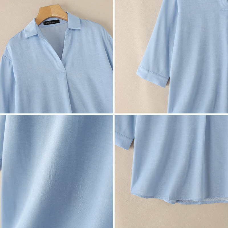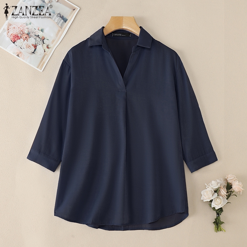 ZANZEA Nữ Hàn Quốc Cổ Áo Màu Trơn Ba Phần Tư Tay Áo Nút Còng Áo Sơ Mi