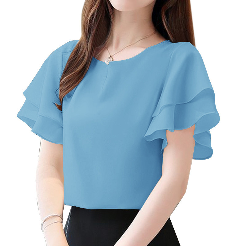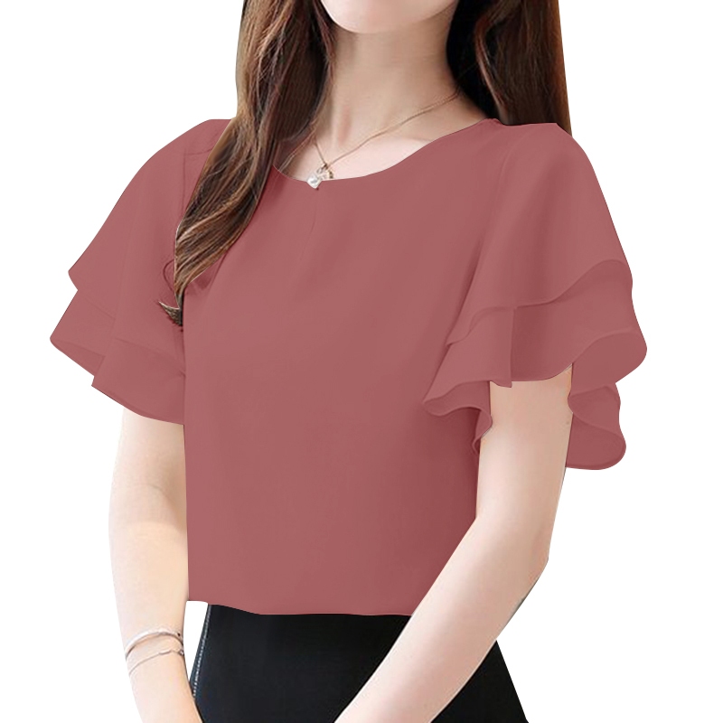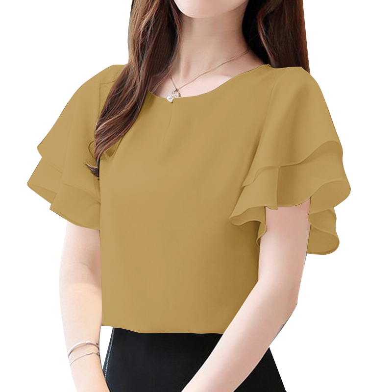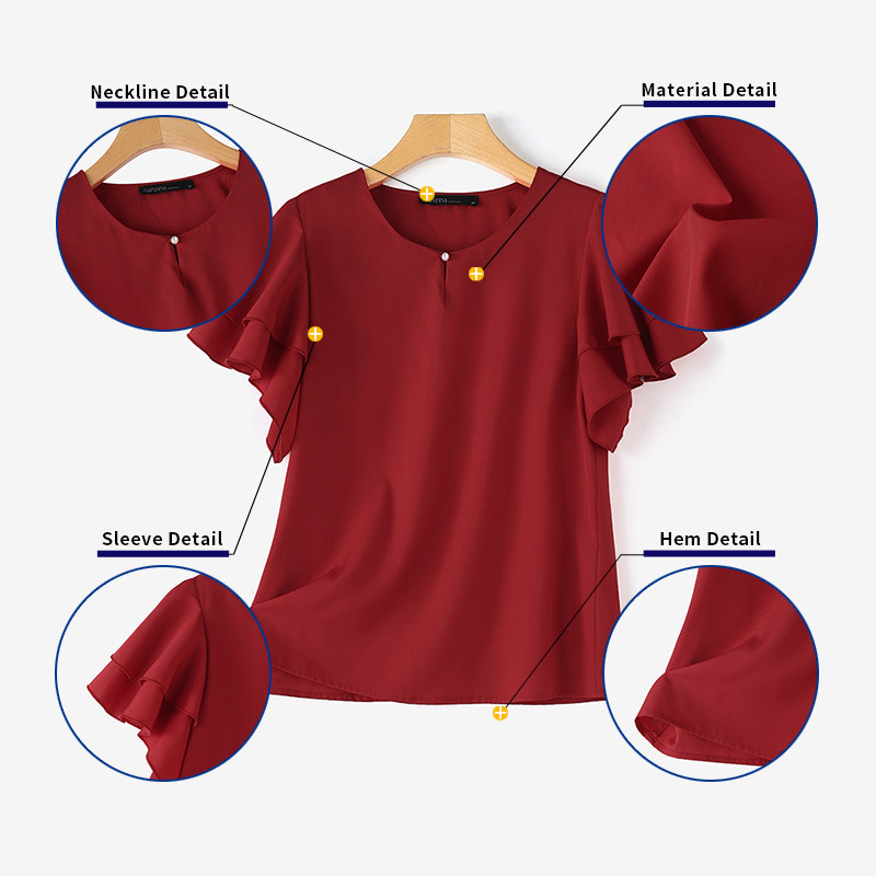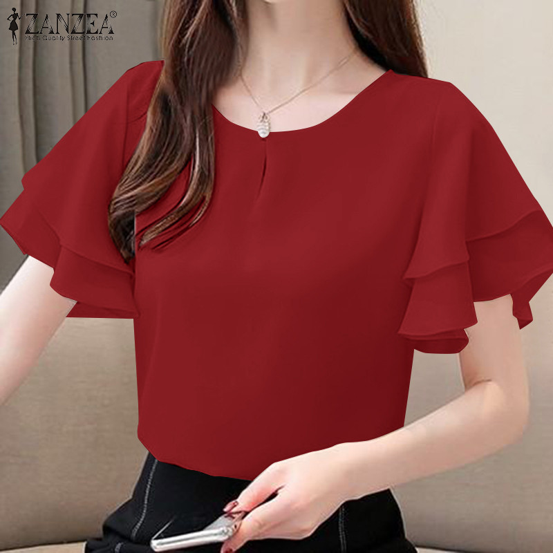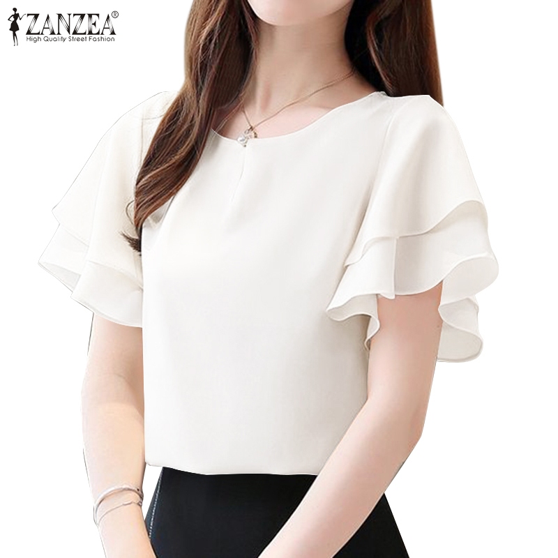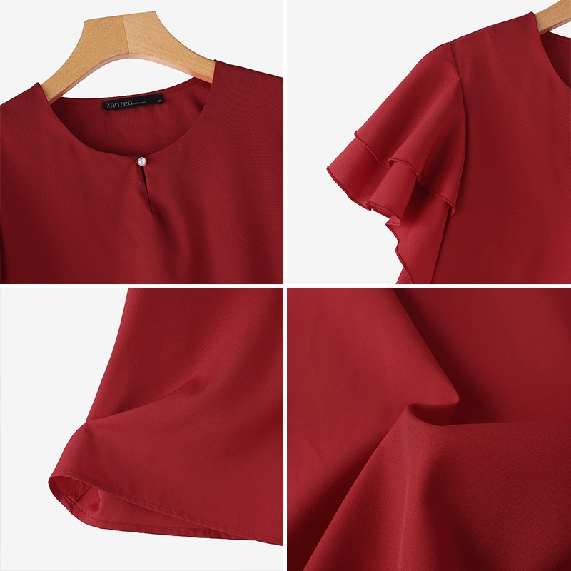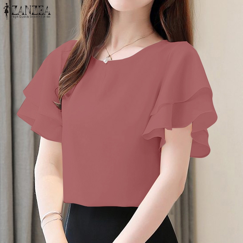 Áo sơ mi ngắn tay cổ tròn hai lớp ZANZEA dành cho nữ Hàn Quốc