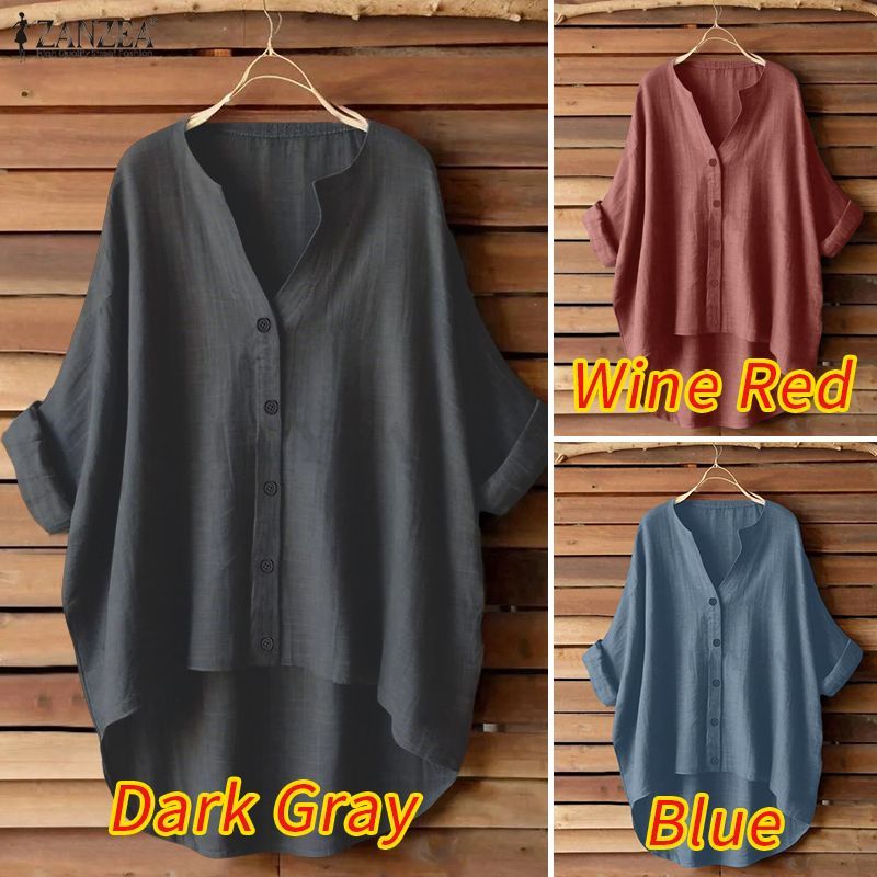 ZANZEA Blouse Shirt Nữ Hàn Quốc cổ chữ V, tay 3/4, nút trước