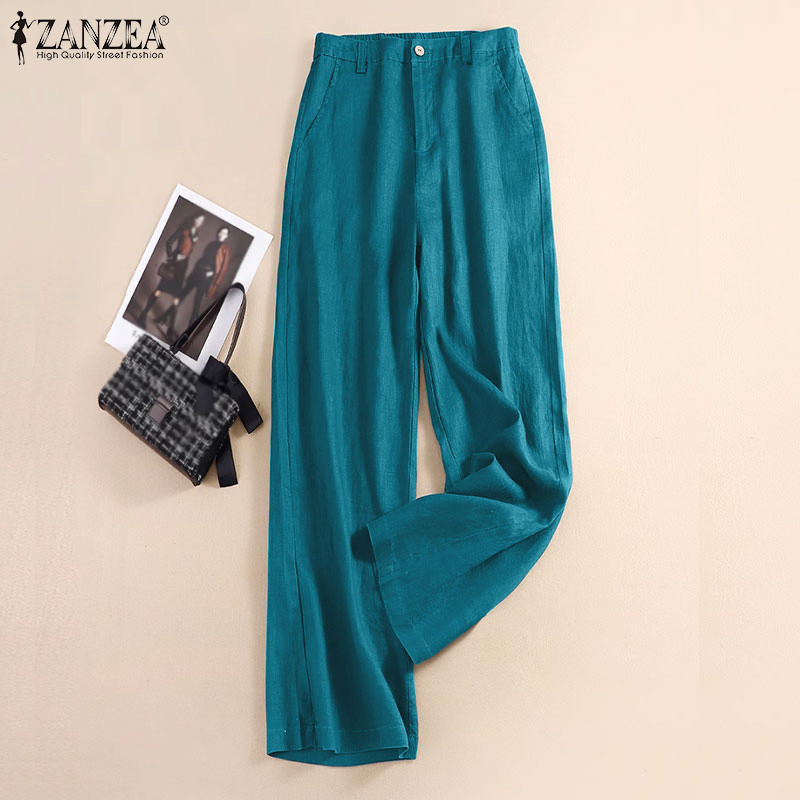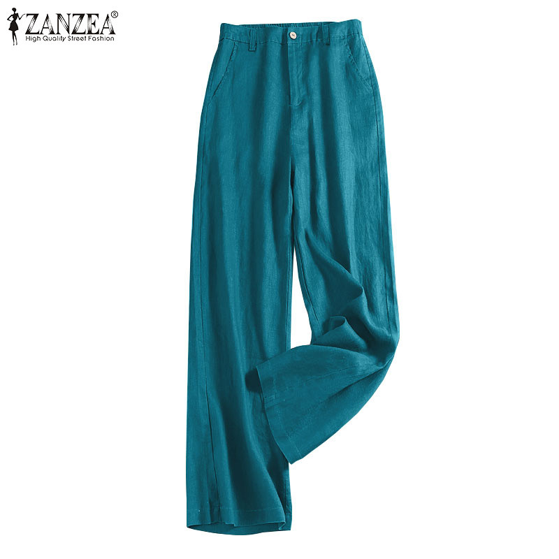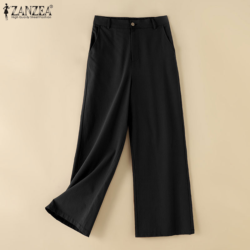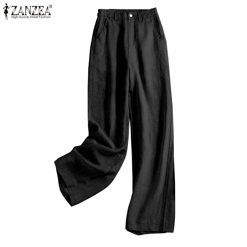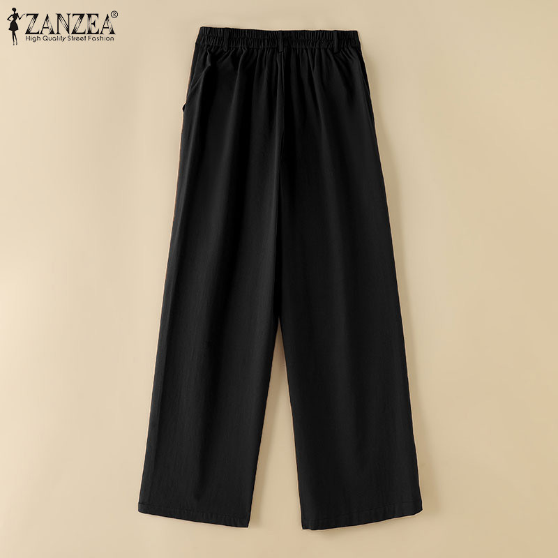 Zanzea Nữ Thời Trang Hàn Quốc Túi Ống Rộng Rời Màu Trơn Cao Cấp Quần Drap