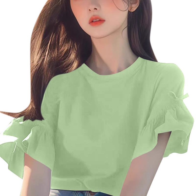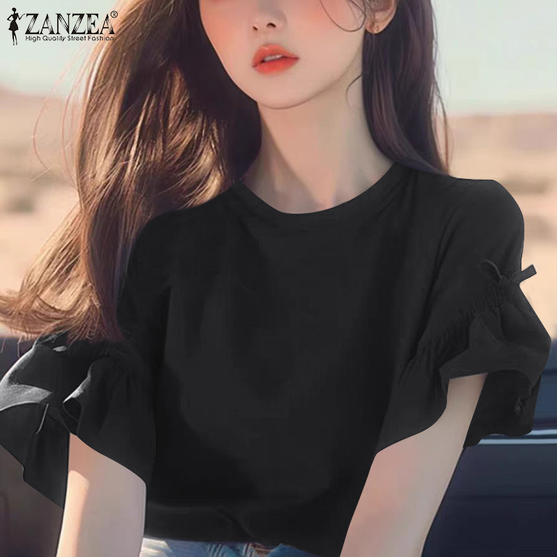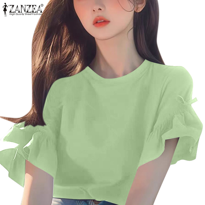 Zanzea Nữ Giải Trí Cổ Tròn Tay Ngắn Bướm Có Viền Ren Áo