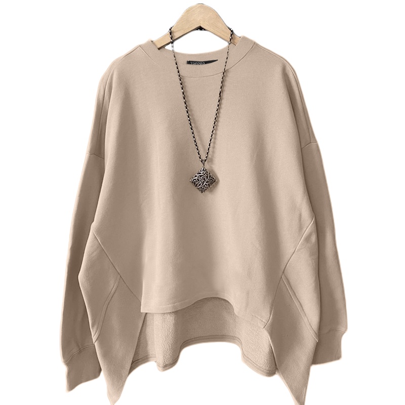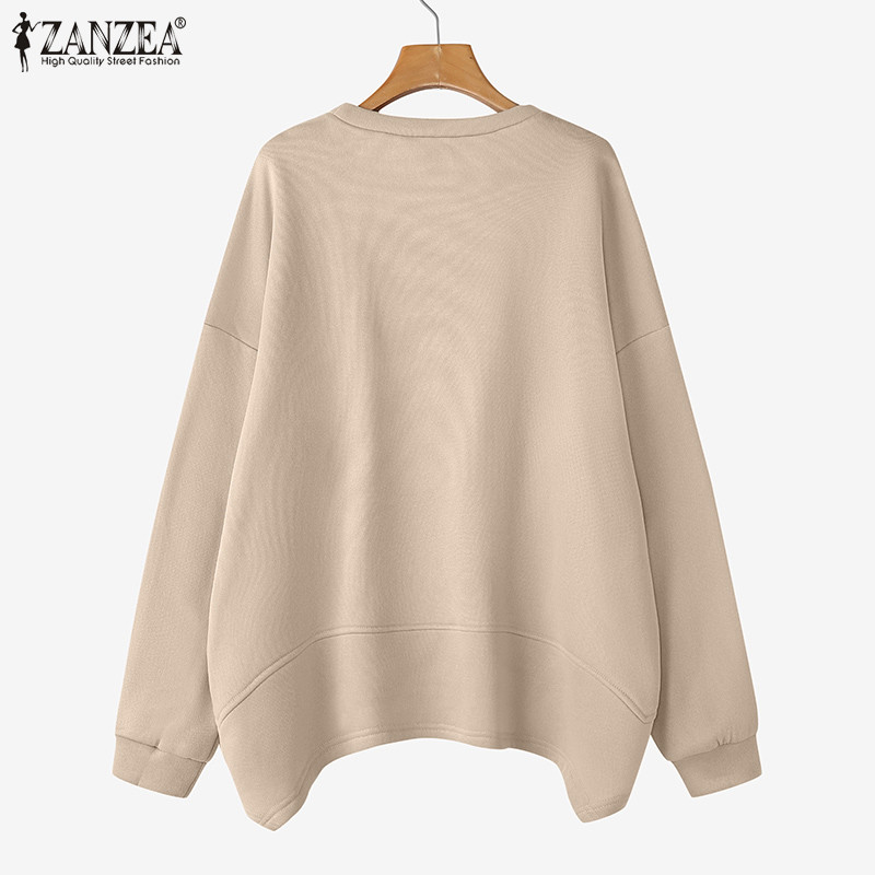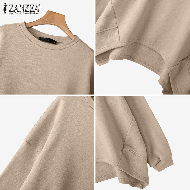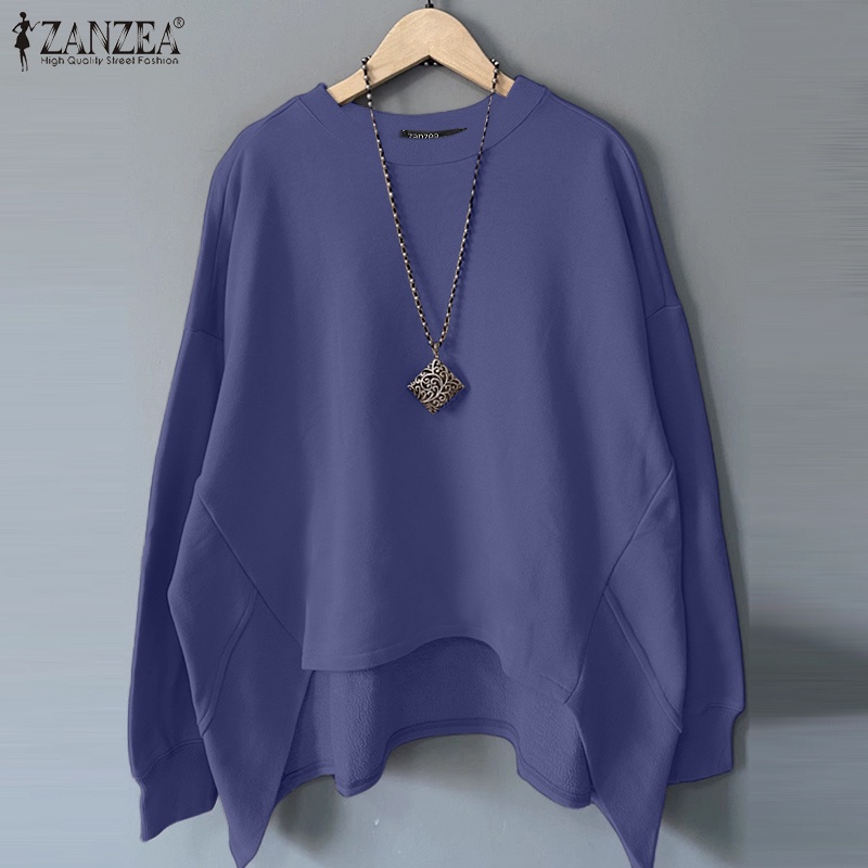 Zanzea Áo nỉ dài tay cổ tròn thời trang nữ màu trơn cao thấp