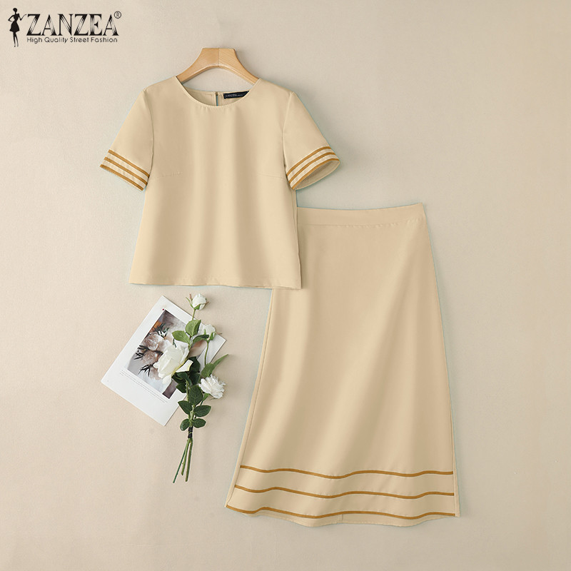 Váy chữ A lưng thun cổ chữ O tay ngắn màu trơn từ ZANZEA - Phù hợp cho kỳ nghỉ