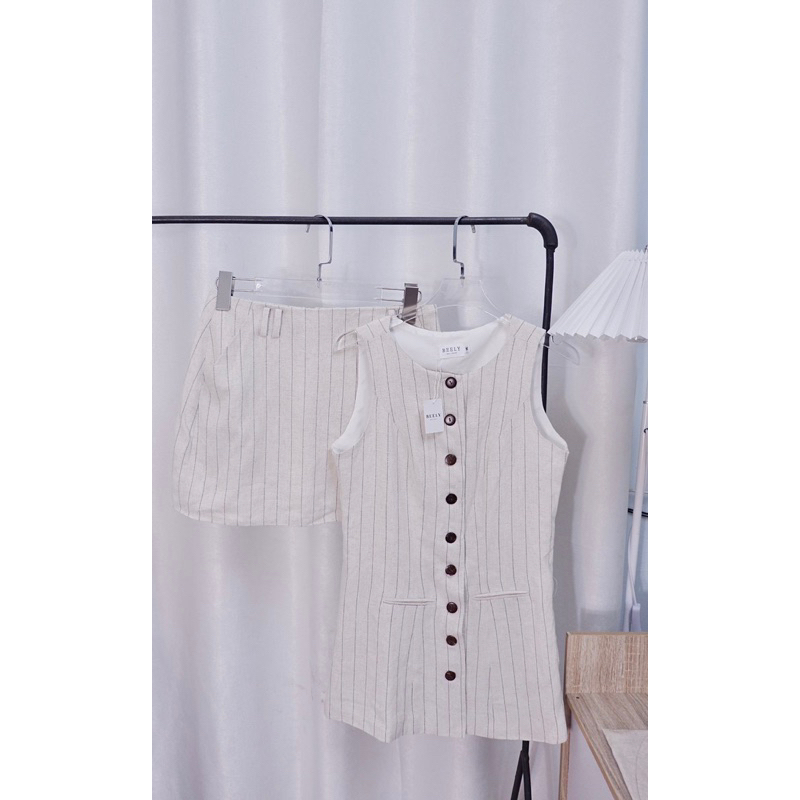 𝗥𝗲𝗺𝗶 𝗦𝗲𝘁 𝗟𝗶𝗻𝗲𝗻- |BEELY| Set Linen áo GILE+ CHÂN VÁY sọc nút gỗ
