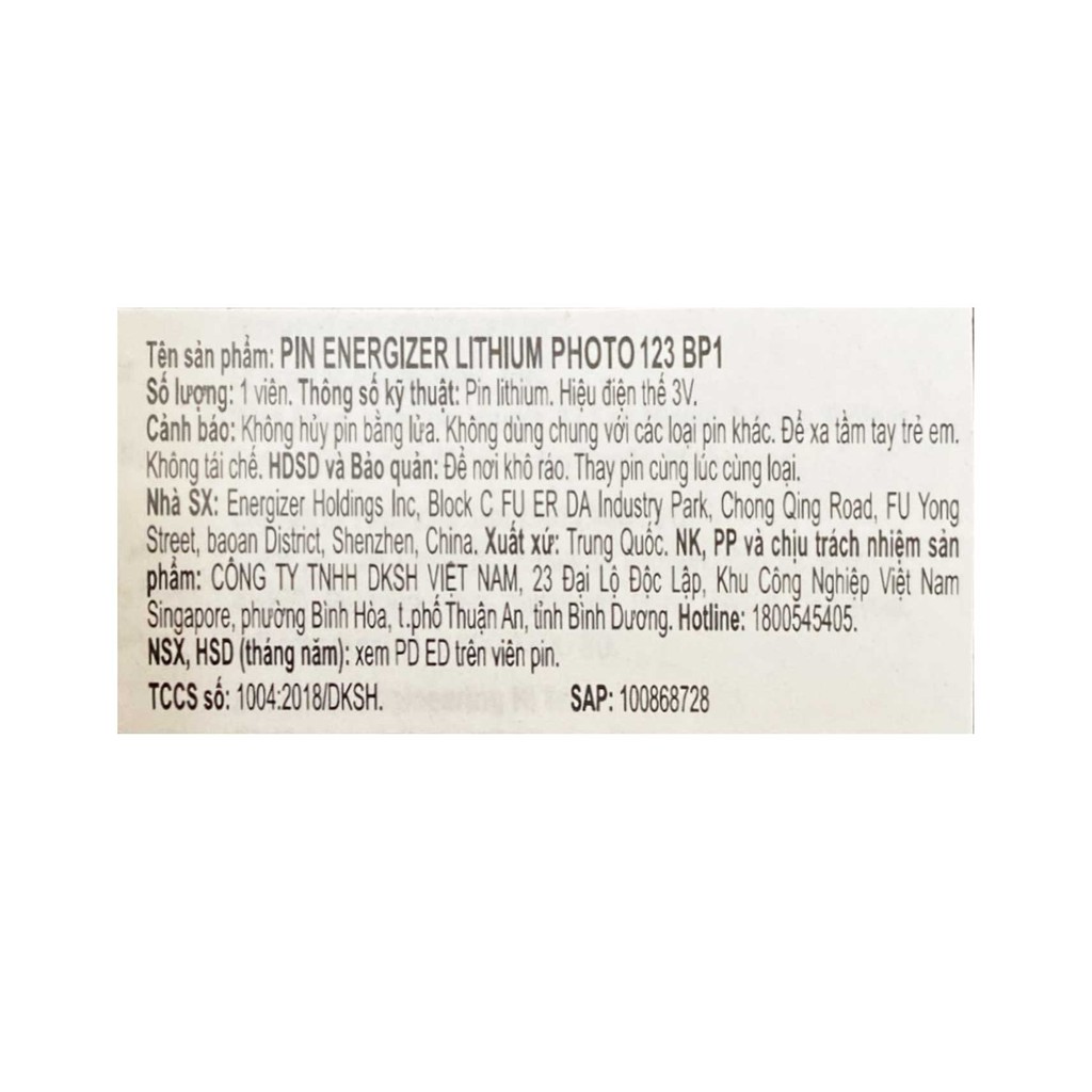 Pin CR123A Energizer, pin máy ảnh CR123A 3V