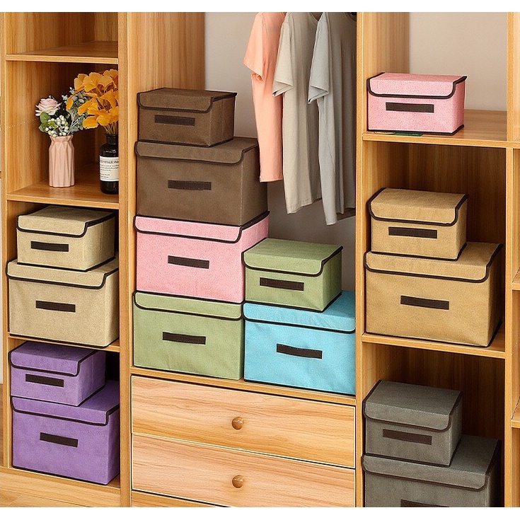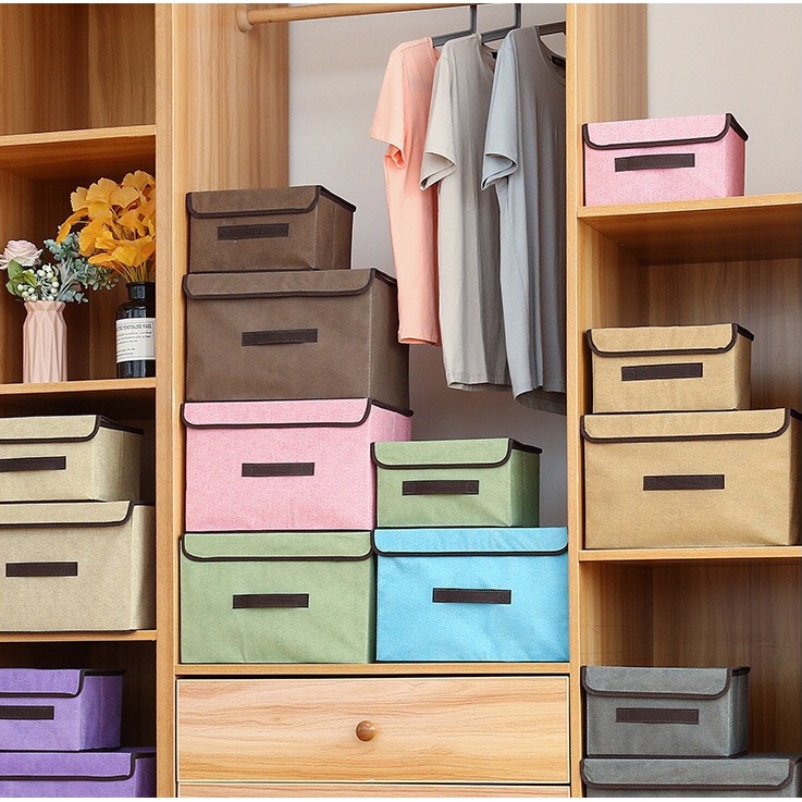 Hộp đựng quần áo thùng vải đựng đồ có nắp đa năng để đồ cá nhân gấp gọn tiện lợi dễ sử dụng