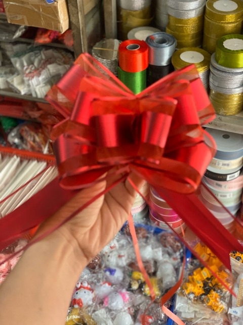 10 cái nơ rút voan trơn bản to 4.3cm dòng mới nhất dùng để trang trí hộp quà hoặc lẵng quà tết