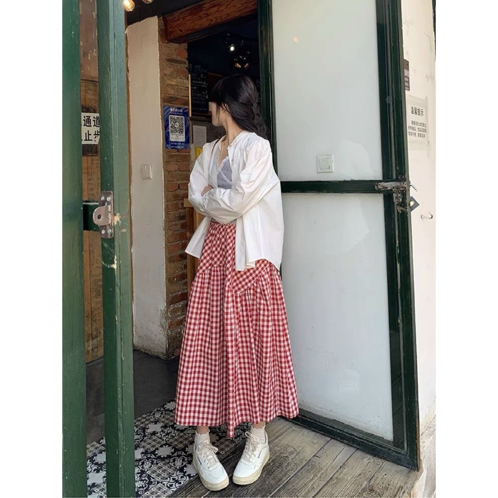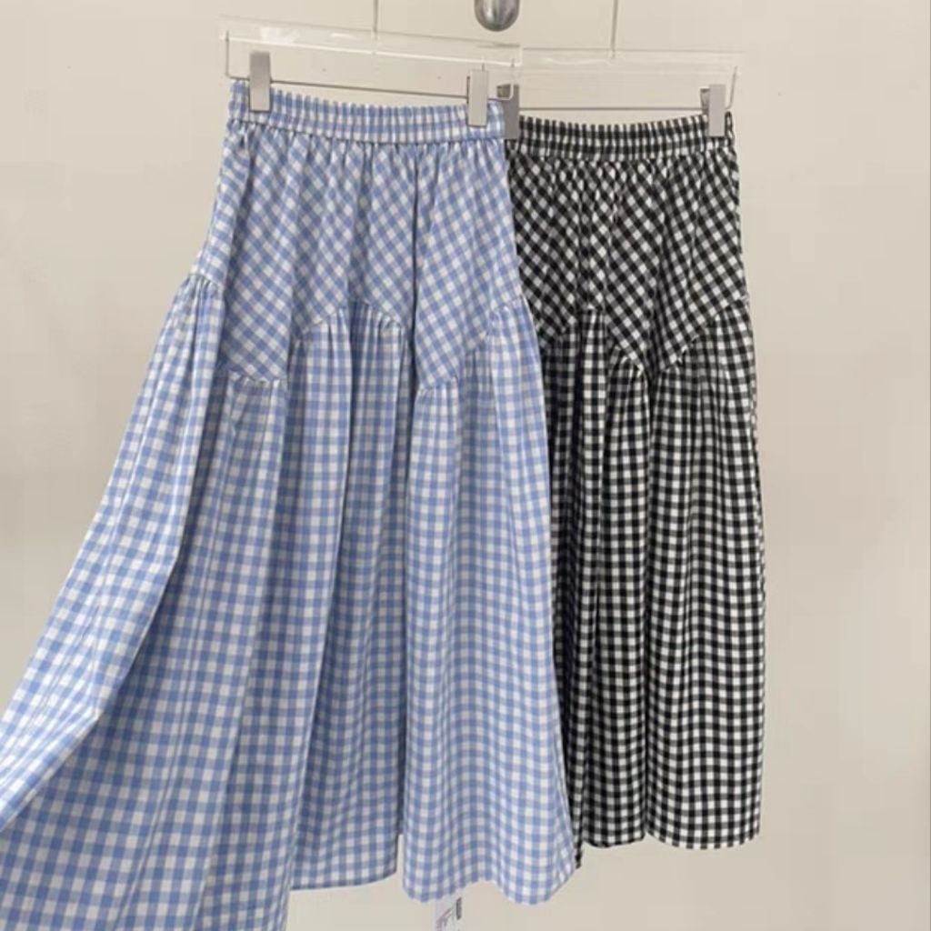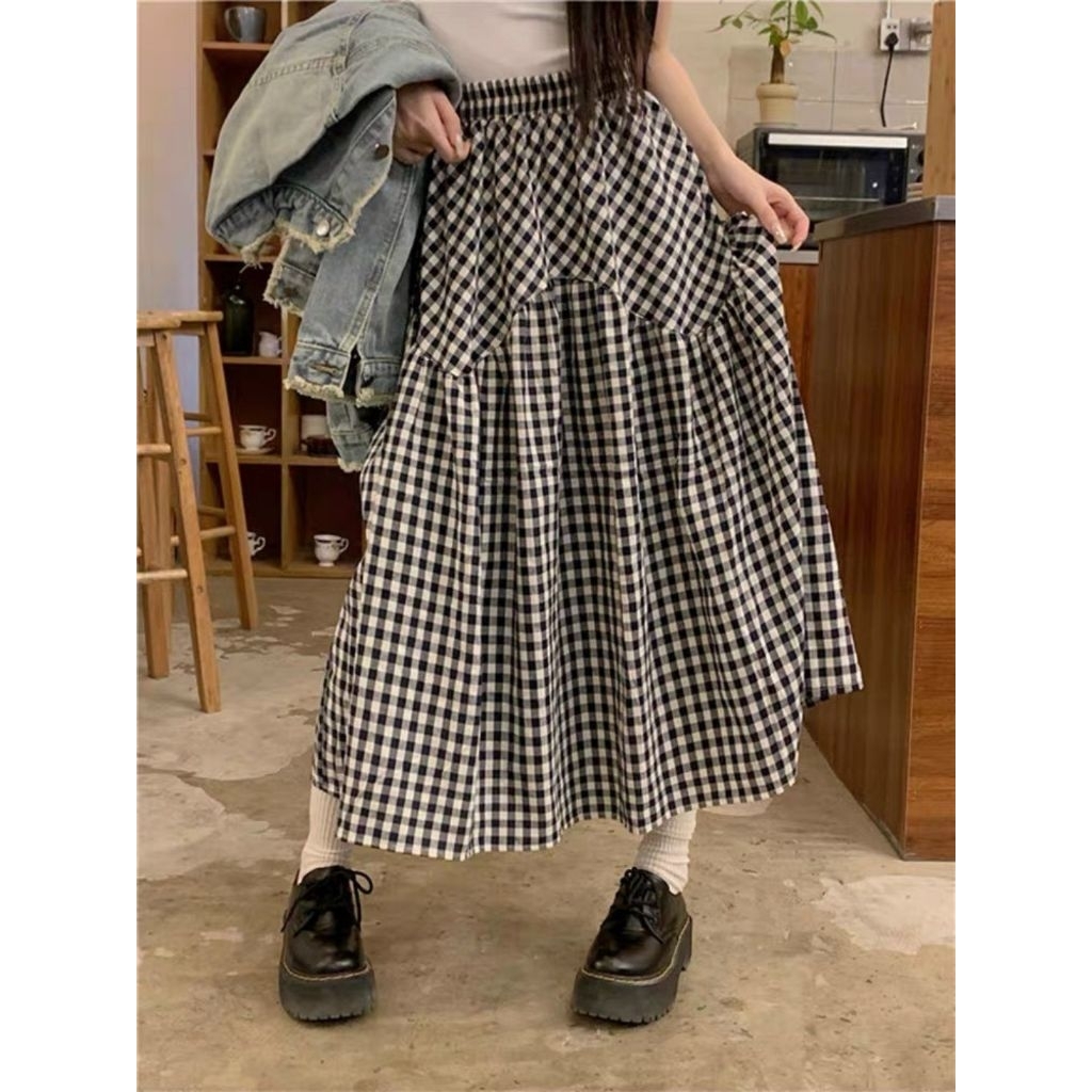 chân váy midi kẻ caro dáng dài hàn quốc