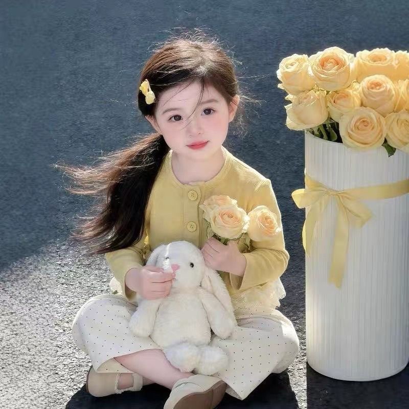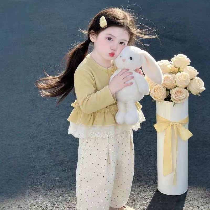 Bộ Đồ Bé Gái Phiên Bản Hàn Quốc 2026 Phong Cách Mới Mùa Xuân Trẻ Em Phong Cách Phương Tây Ren Cardigan Top Chấm Bi Quần Hai Mảnh Phù Hợp Với