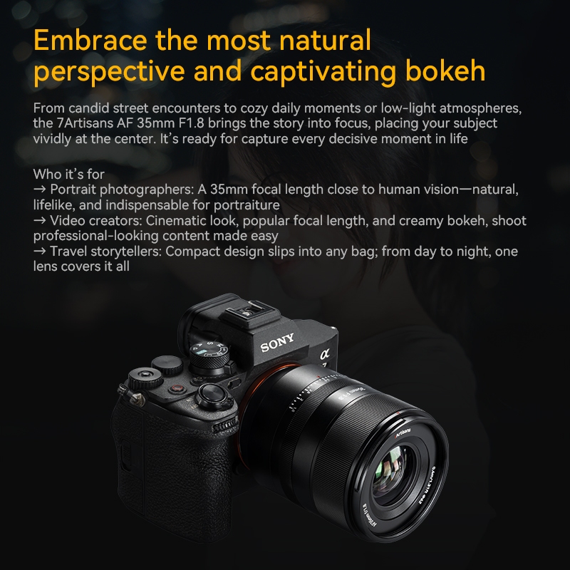 7artisans 35mm F1.8 Full-Frame AF Ống kính chân dung lấy nét tự động cho Sony E Nikon Z STM Silent Motor Prime Lens