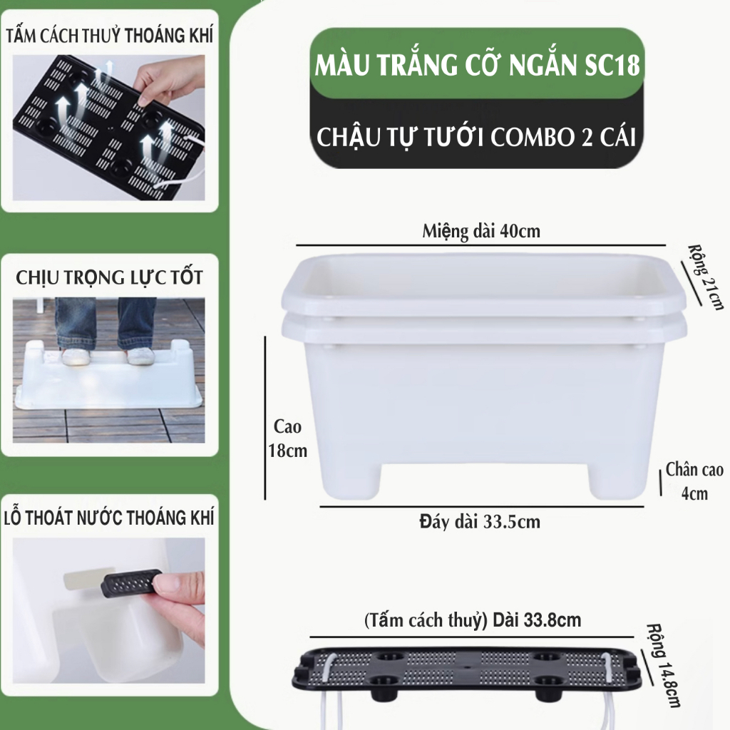 Chậu trồng rau tự tưới Oliz SC1819, chậu trông cây ban công sân thượng hình chữ nhật có chân đế