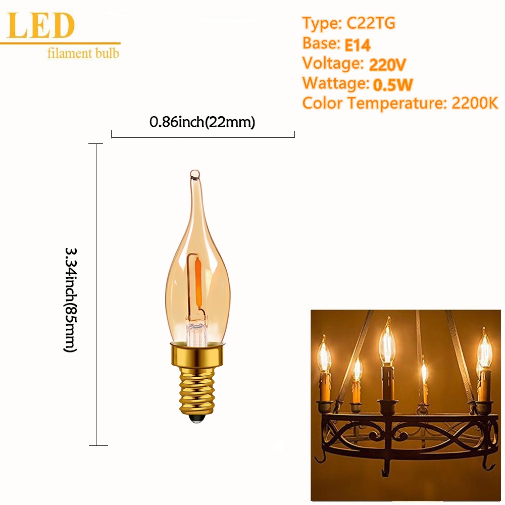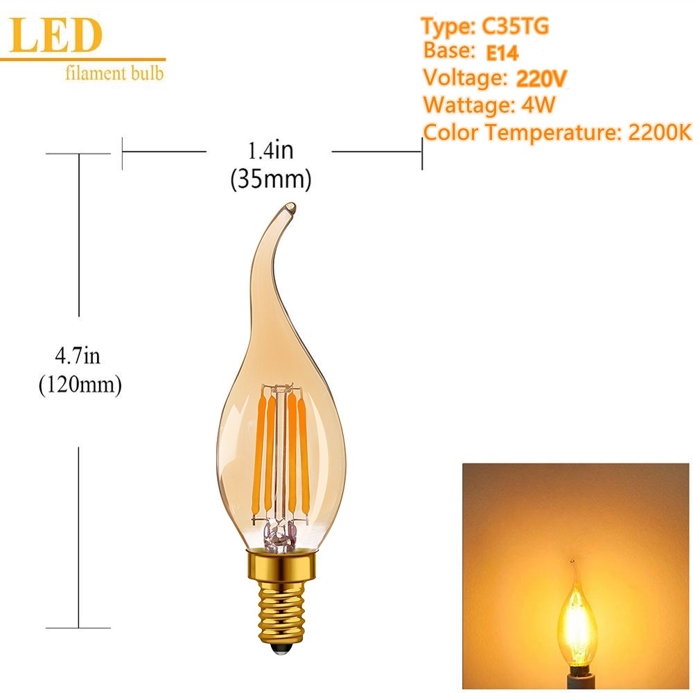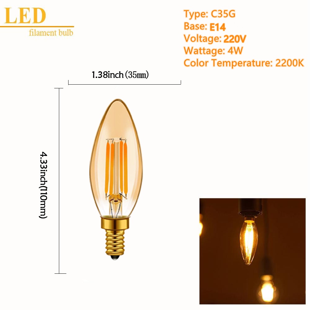 Bóng Đèn LED E14 E27 4W 2200K 220V C35 C7 T20 T22 T28 ST45 T25 G40 Phong Cách Vintage