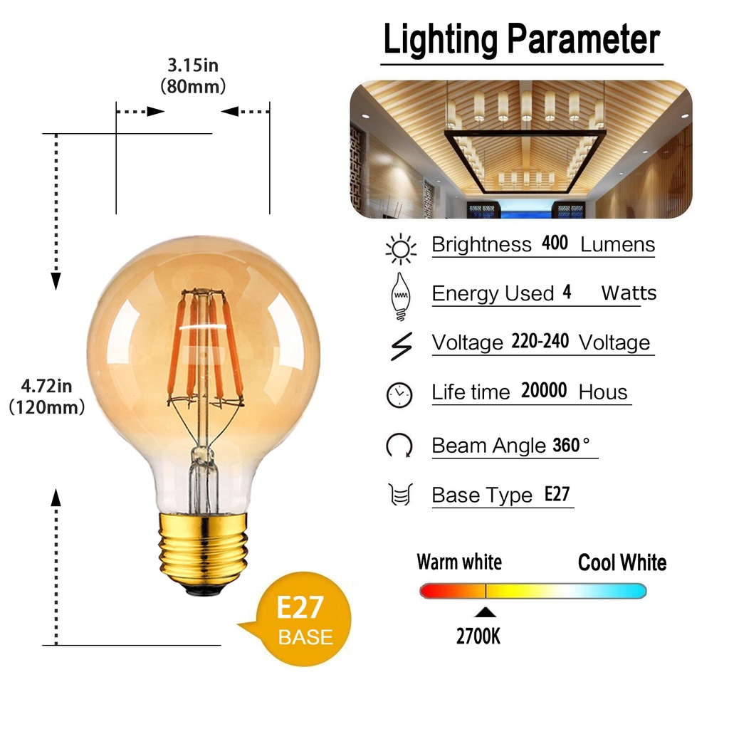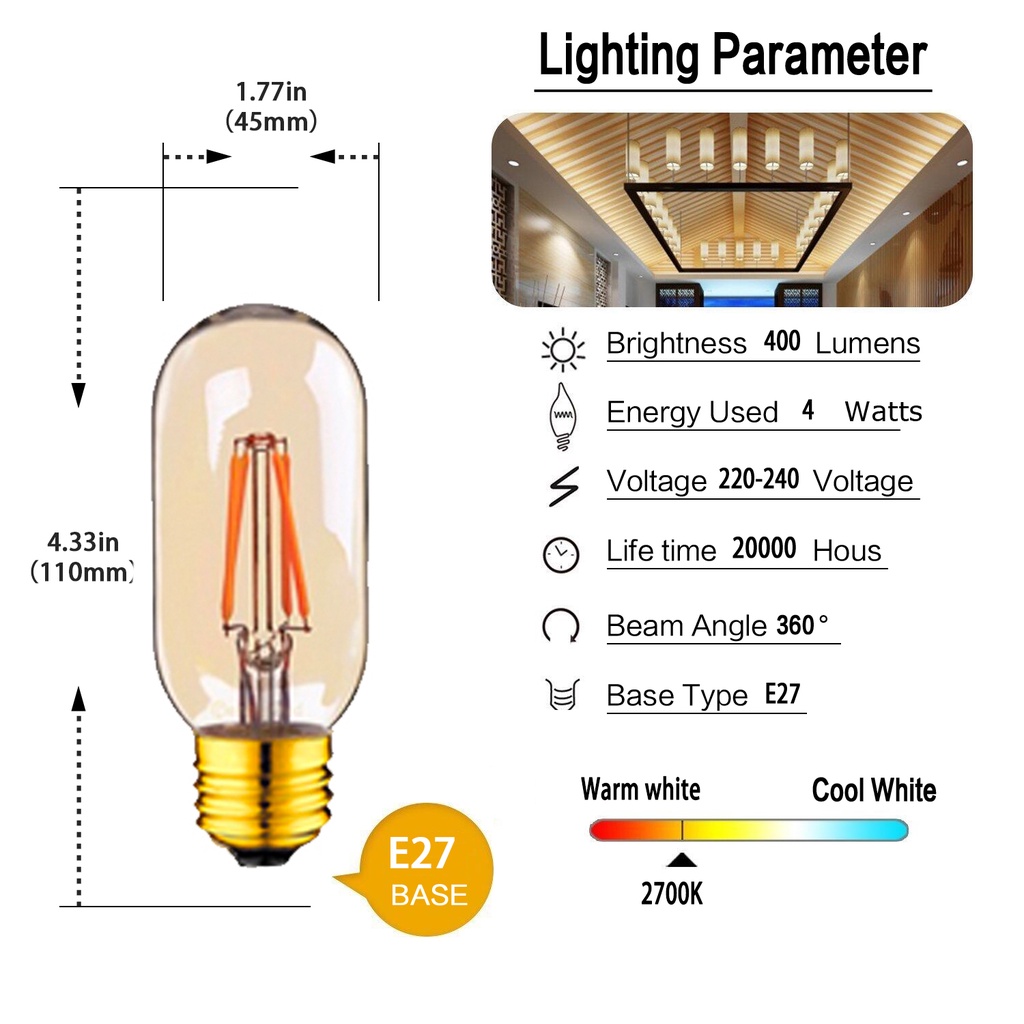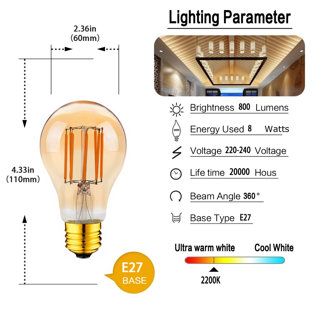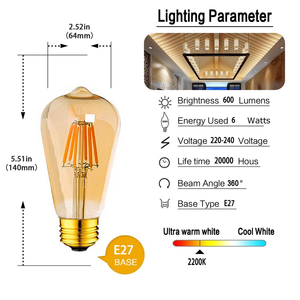 Vitange E12 E14 E27 Bóng Đèn LED Edison 1W 2W 3W 4W 6W 8W Bóng Đèn Dây Tóc LED C7 T22 C35 A19 G40 G80 ST45 ST64 Bóng Đèn Ngủ Trắng Ấm Áp Retro Trang Trí Nhà Cà Phê Phong Cách Công Nghiệp L