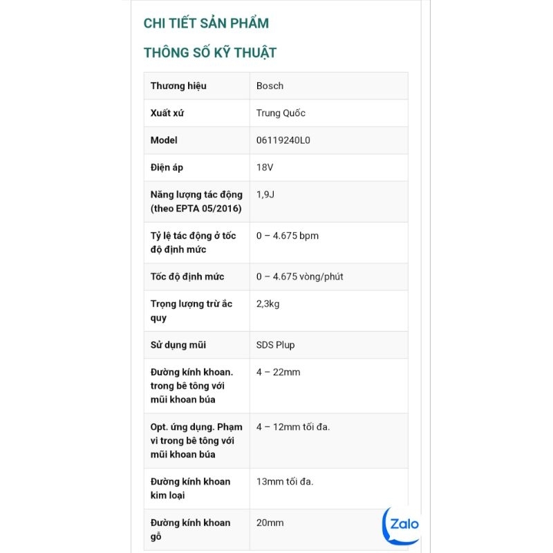 máy khoan bê tông bosch 18v