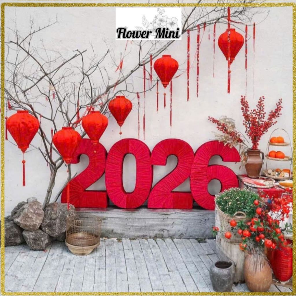 Bộ Chữ Tết Đính Hoa Hồng Và Số 2026 Bọc Nhung Decor Tết Trang Trí Nhà Cửa, Cửa Hàng Đón Năm Mới