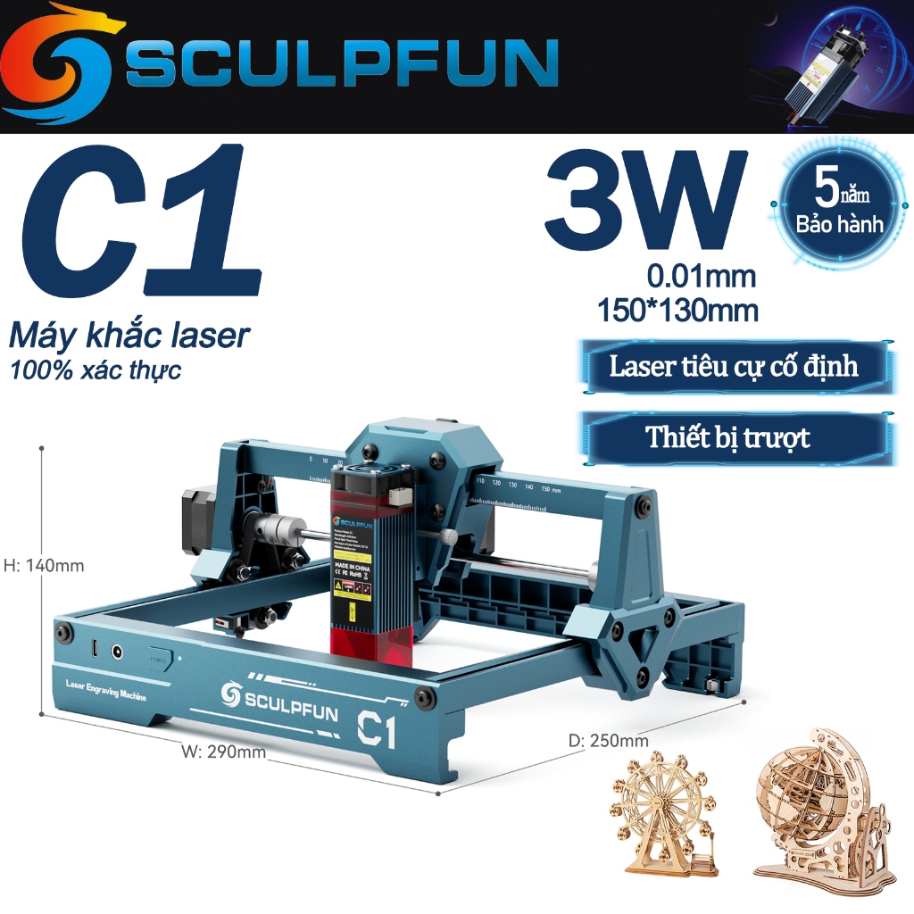 Máy Khắc Laser Mini Sculpfun C1 3w Lắp Ráp Sẵn Cho Người Mới Bắt Đầu Khắc Gỗ Da Kim Loại Tốc Độ Cao