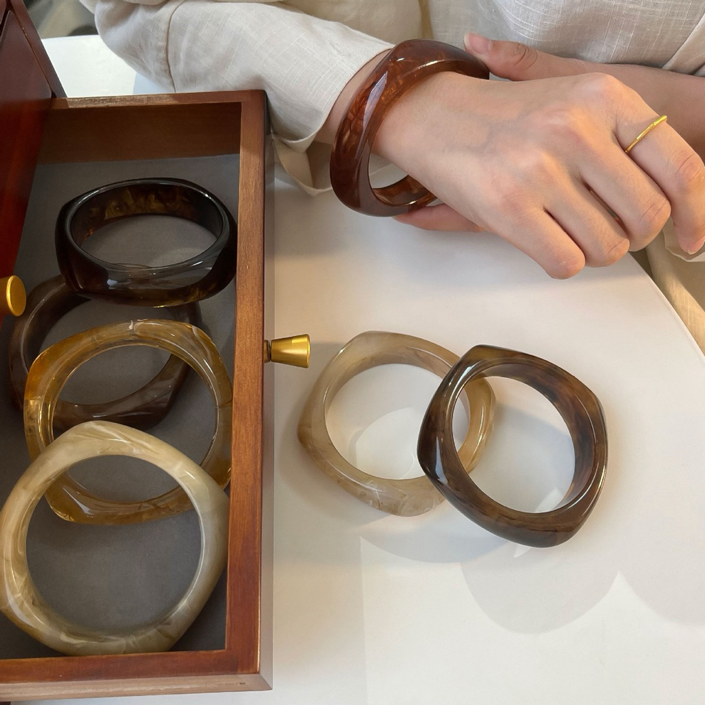 Vòng tay acrylic nữ dày đủ màu sắc vintage