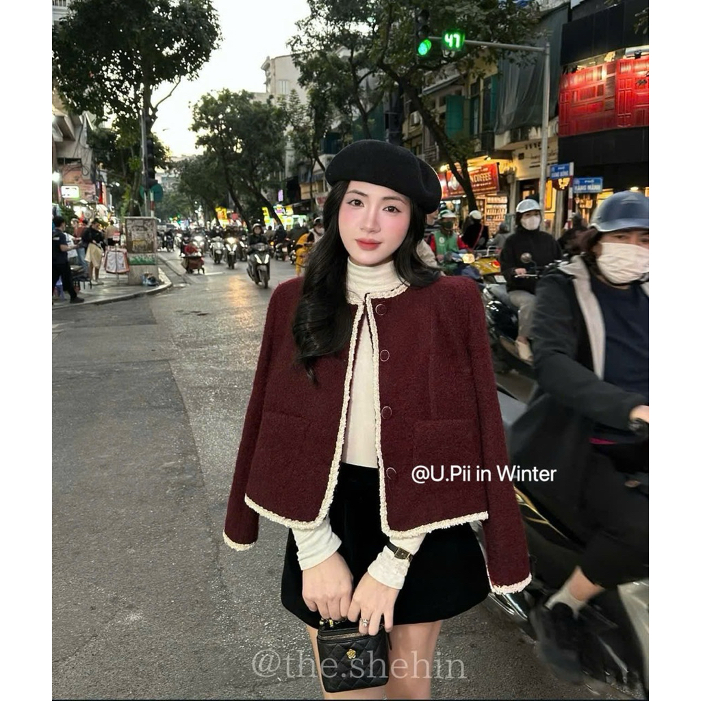 1505 Áo khoác dạ Sally chần trám phong cách Hàn Quốc viền ren 15057
