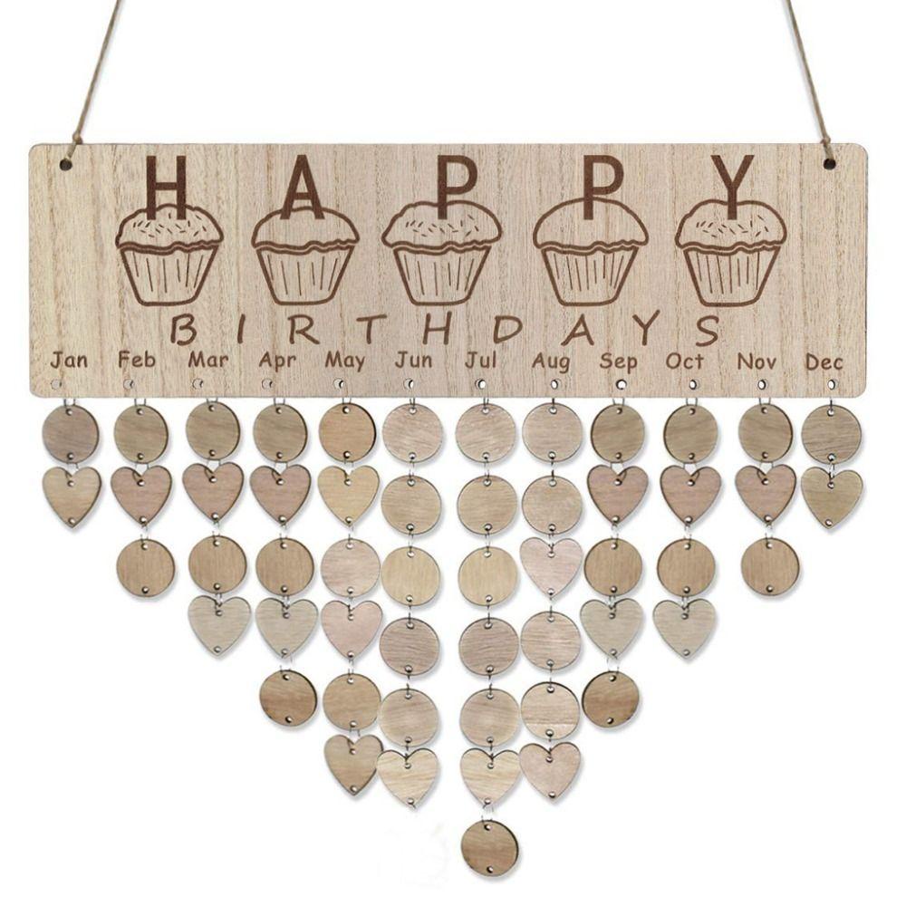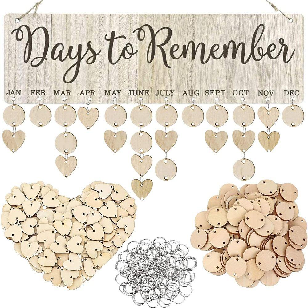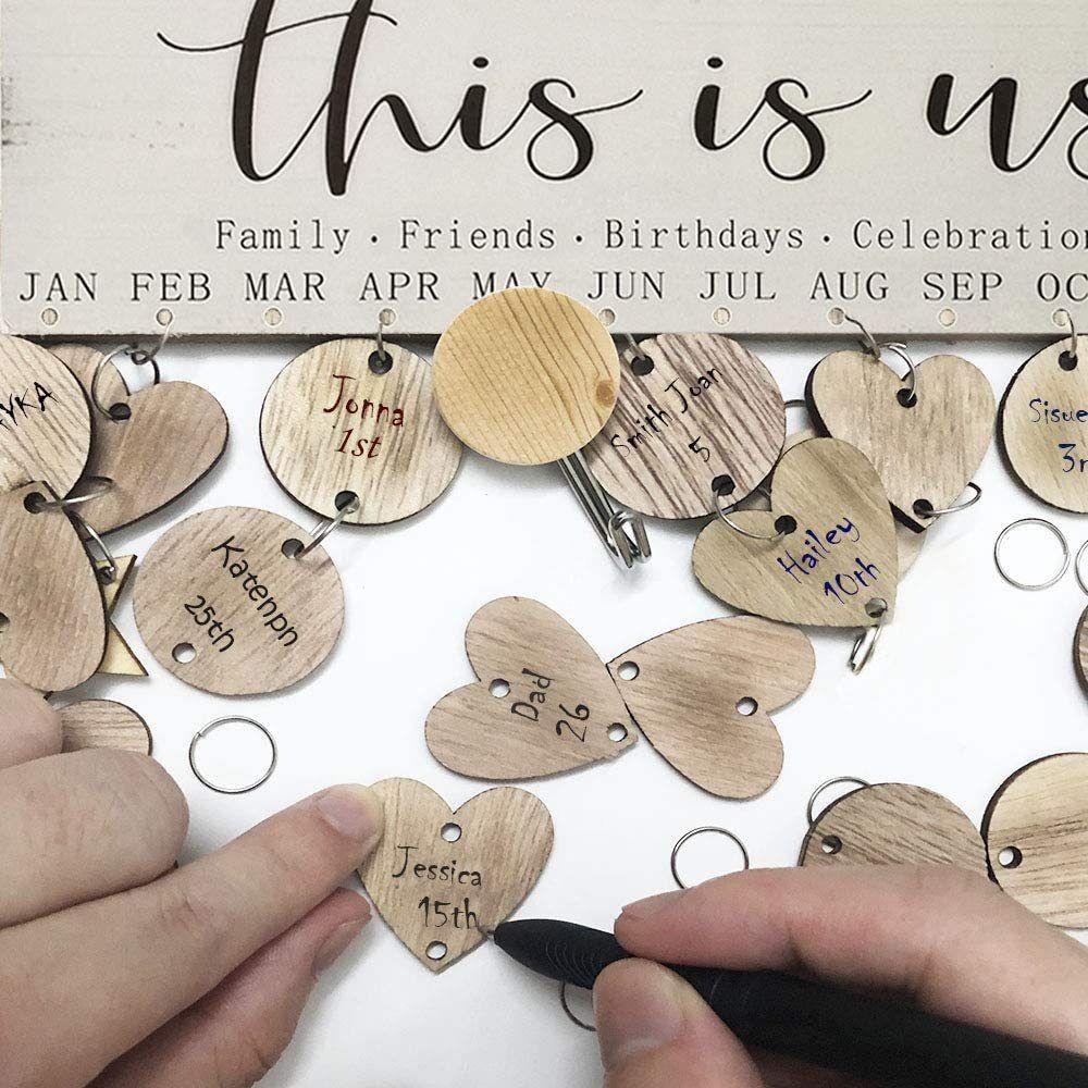 Bộ 50 Gỗ Treo Tường Lịch, Hình Trái Tim DIY Nhắc Sinh Nhật Mảng Bám, Bảng Sinh Nhật Với 50 Thẻ Lịch Gỗ Mảng Bám Trang Trí Giáng Sinh