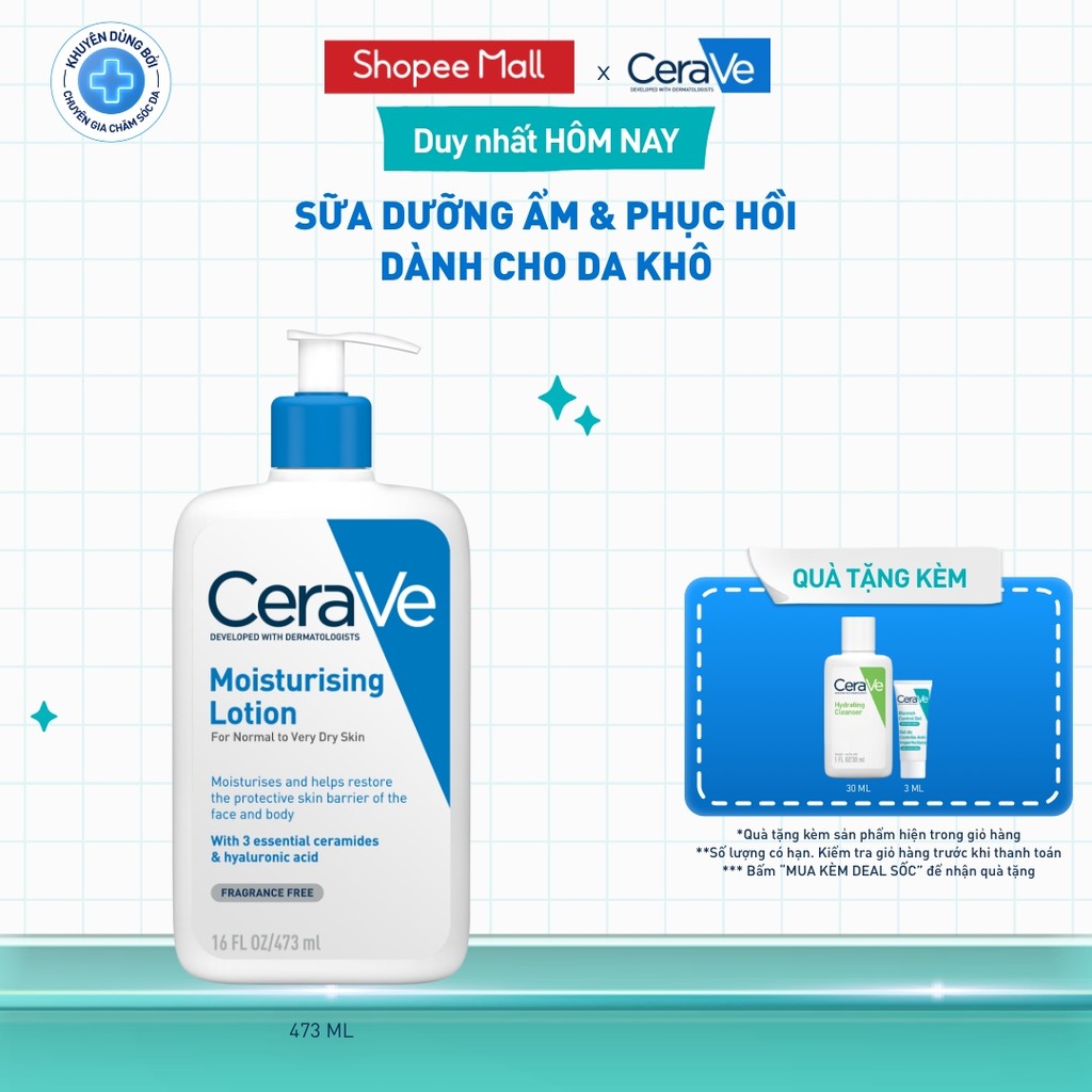 Sữa dưỡng ẩm phục hồi chuyên sâu và giữ da ẩm mịn suốt 48H, duy trì hàng rào bảo vệ da CERAVE MOISTURISING LOTION 473ML
