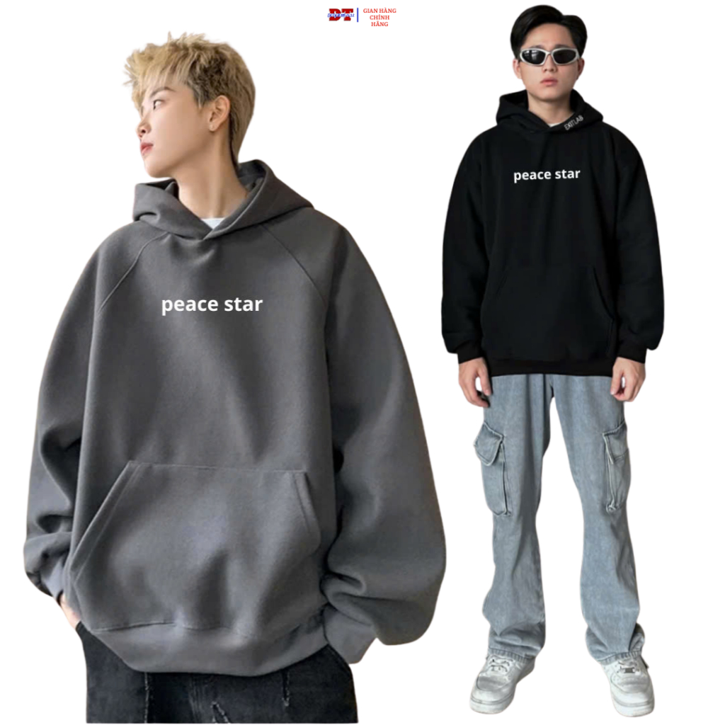 [MẪU HOT] Áo hoodie PEACE STAR 3 màu đen trắng xám chất nỉ mềm mịn thật phong cách trẻ trung - K1
