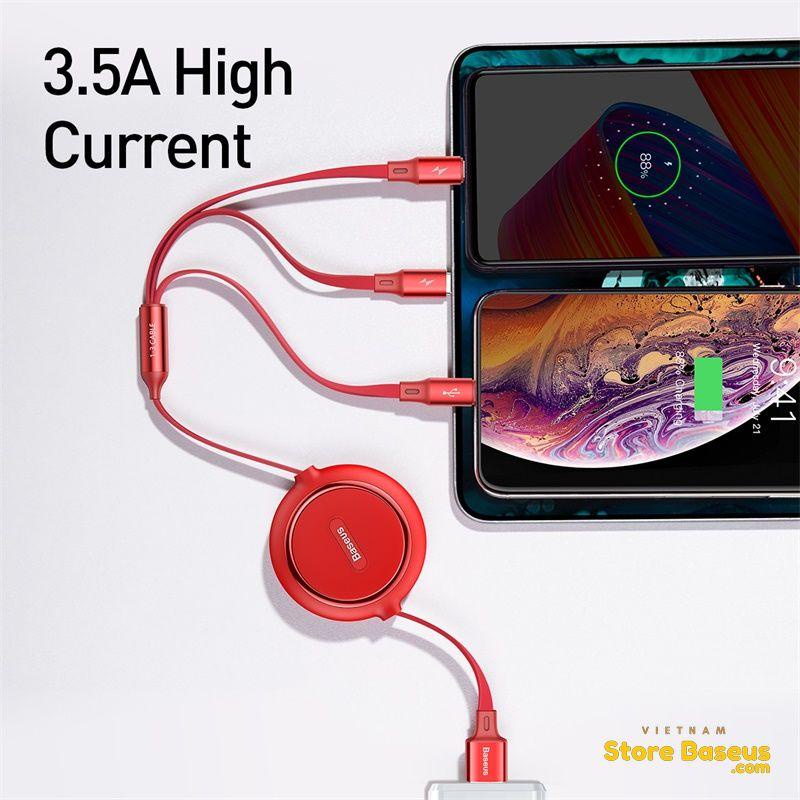 Cáp dây rút 3in1 Baseus Golden Loop Elastic (C+U+L)| Sạc nhanh, Truyền dữ liệu tốc độ cao - BH 18 tháng