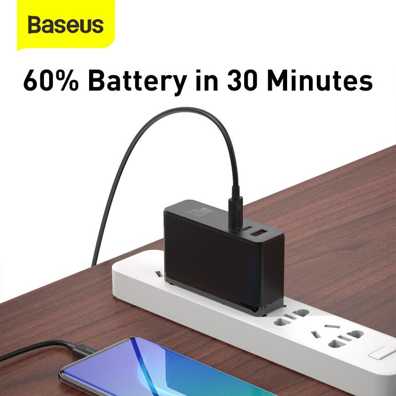 Củ sạc nhanh 120W Baseus Gan2 Pro 3 cổng (2C+U)| Kèm dây cáp Type-C to Type-C 1m cho laptop, tablet, điện thoại