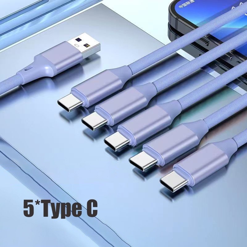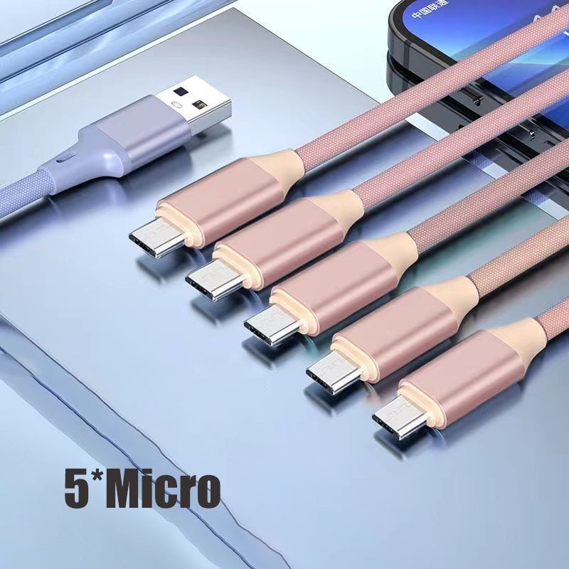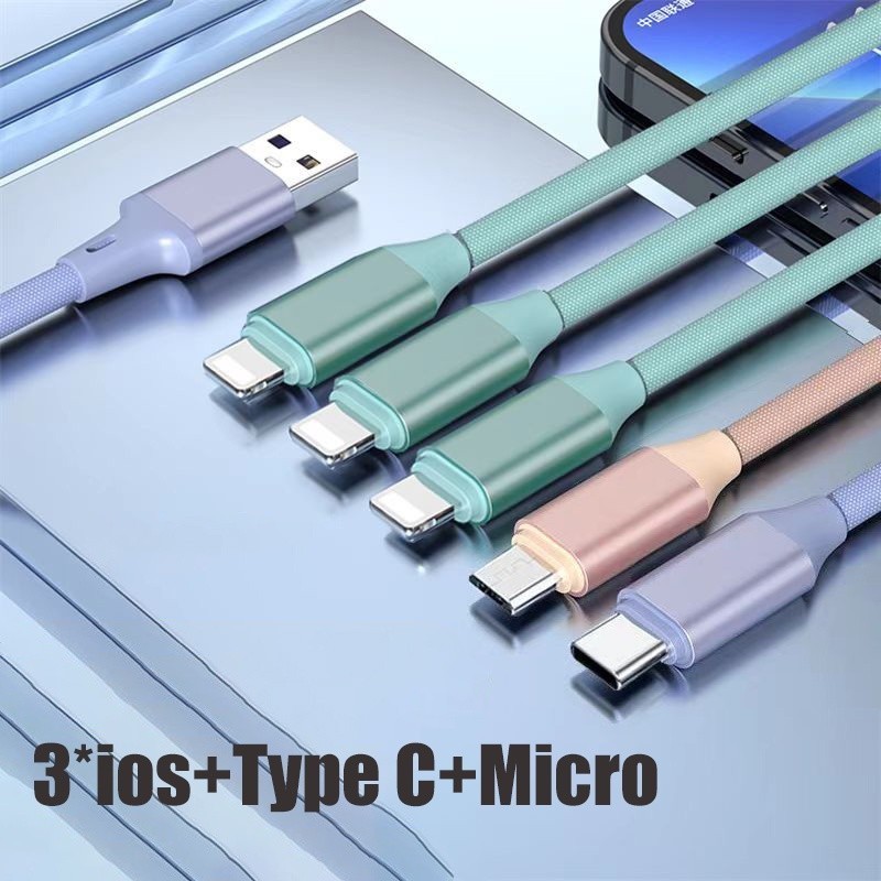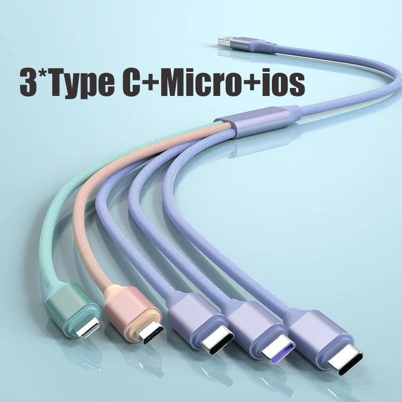 Cáp dữ liệu sạc nhanh dệt 66W Cáp sạc nhanh 5 trong 1 1.5M USB A đến i os Type C Micro Dây sạc Cáp điện thoại di động