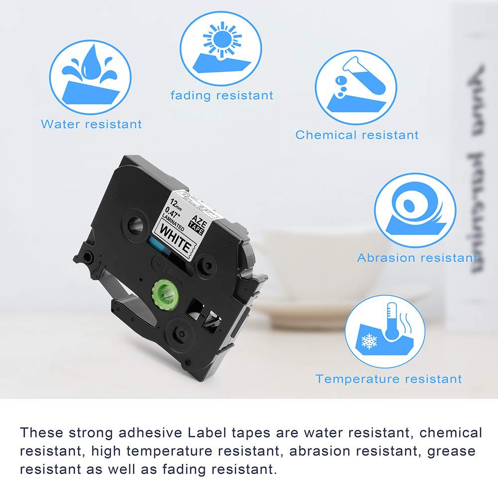 Compatible Brother P-touch Label Makers Tape TZE-231 TZE231 TZ-231 TZ231, Standard Laminated Labelling Tape Compatible with Brother PT-H110 PT-D200 PT-D210 PT-D400 PT-D600 P-Touch CUBE Plus, Black on White, 12mm x 8m, 2Pack