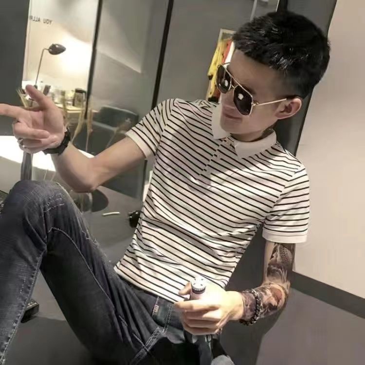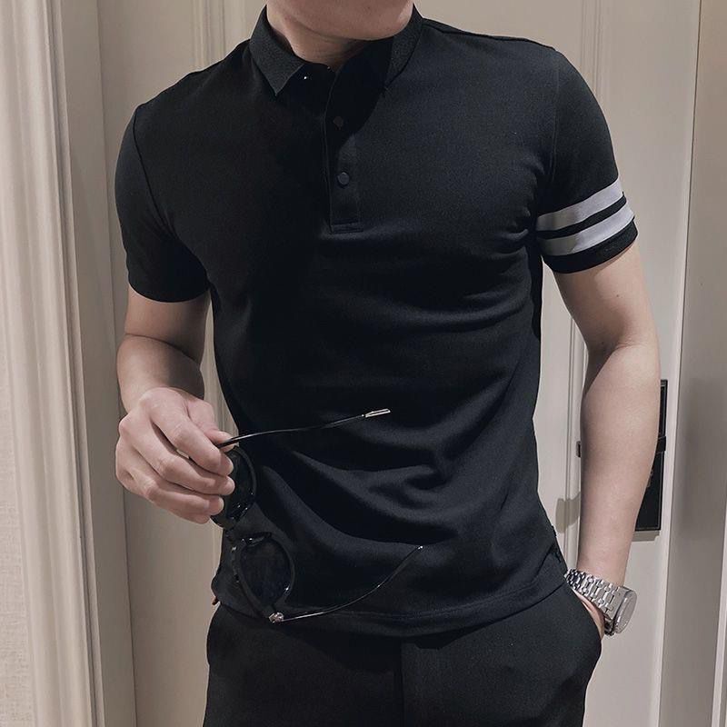 [Jenny Khuyến Nghị] Áo Thun POLO Hai Lớp Tay Ngắn Dáng Ôm Màu Đen Thời Trang Mùa Hè Đường Phố Cho Nam