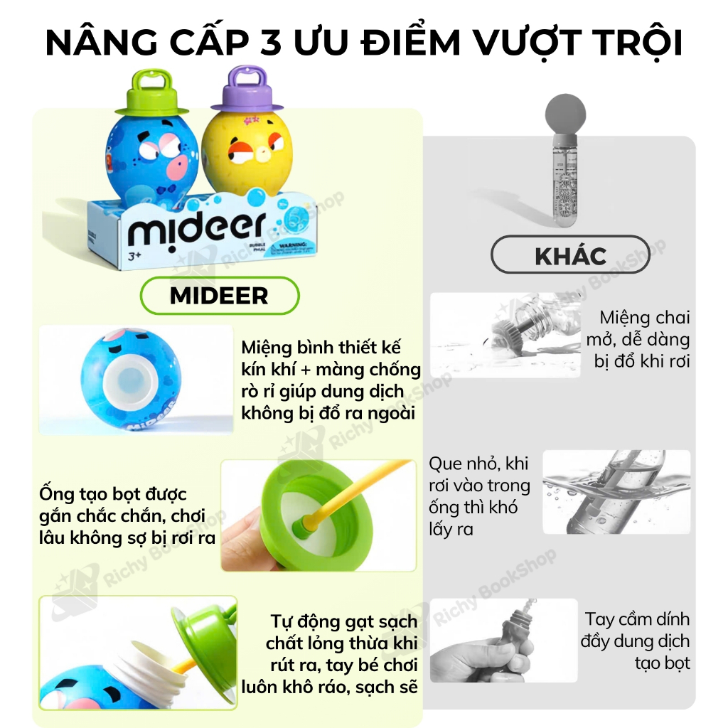 Que tạo bong bóng xà phòng mini cầm tay Mideer, cây thổi bong bóng xà phòng ngoài trời cho bé