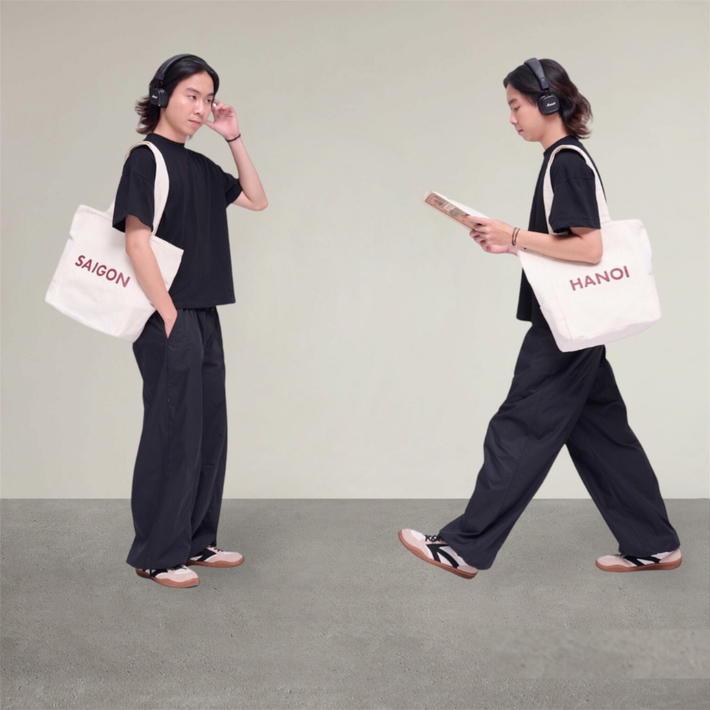 Túi tote SAIGON, HANOI, túi tote vải canvas in 2 mặt basic đi học/ chơi, làm quà tặng, Nhận in theo yêu cầu(Tên TP/Tỉnh)