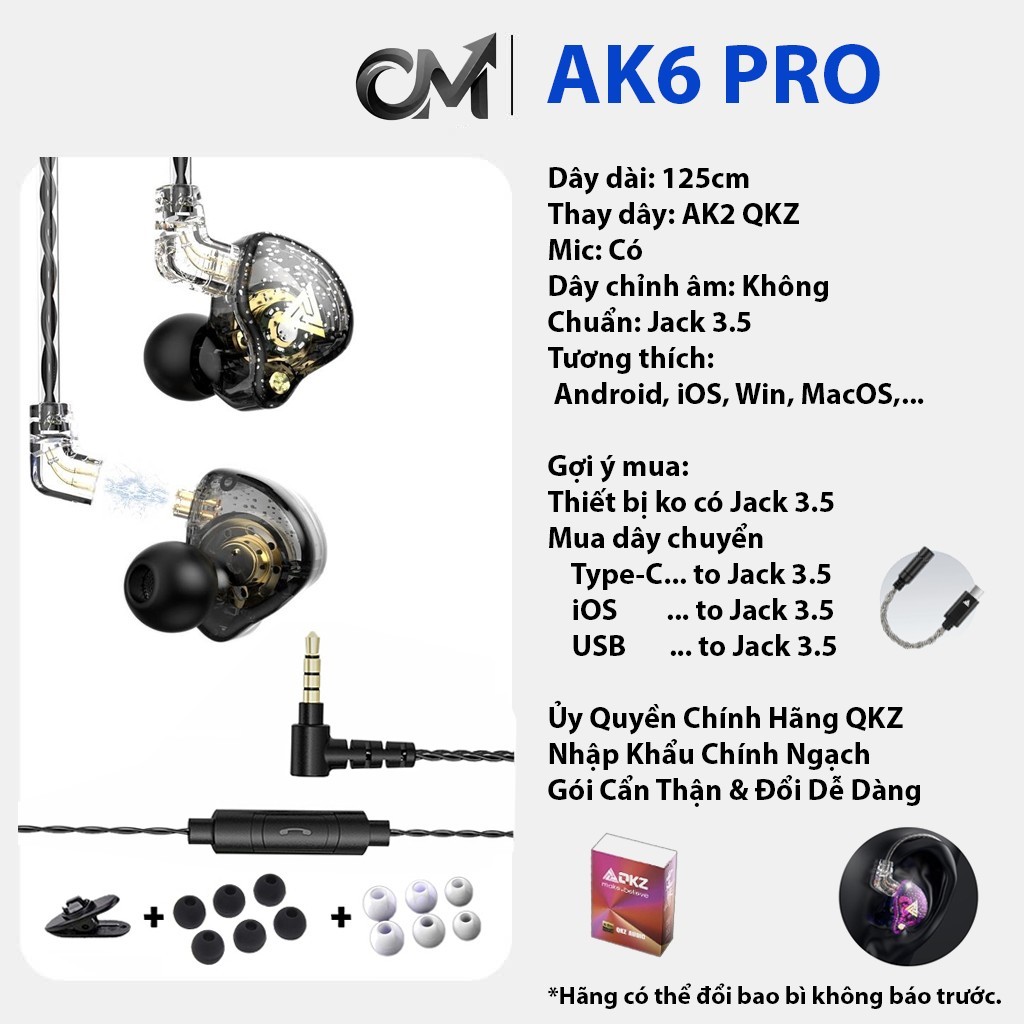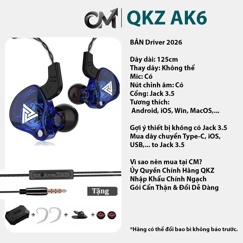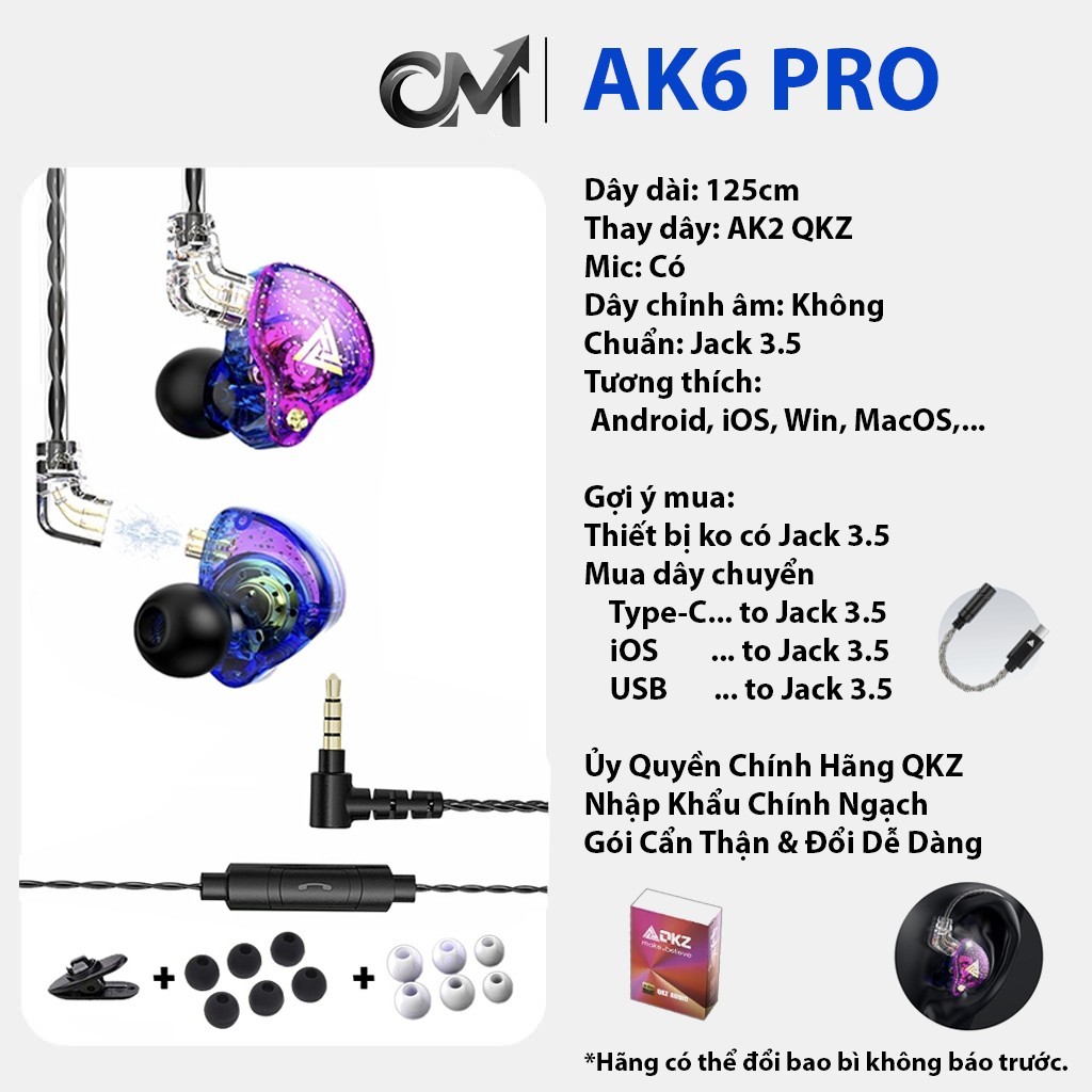 Tai Nghe Nhét Tai QKZ AK6 (Có Mic, Loa Trầm, Bass Mạnh, Kết nối điện thoại & pc, Tặng kèm hộp hộp, Dây chống rối...)