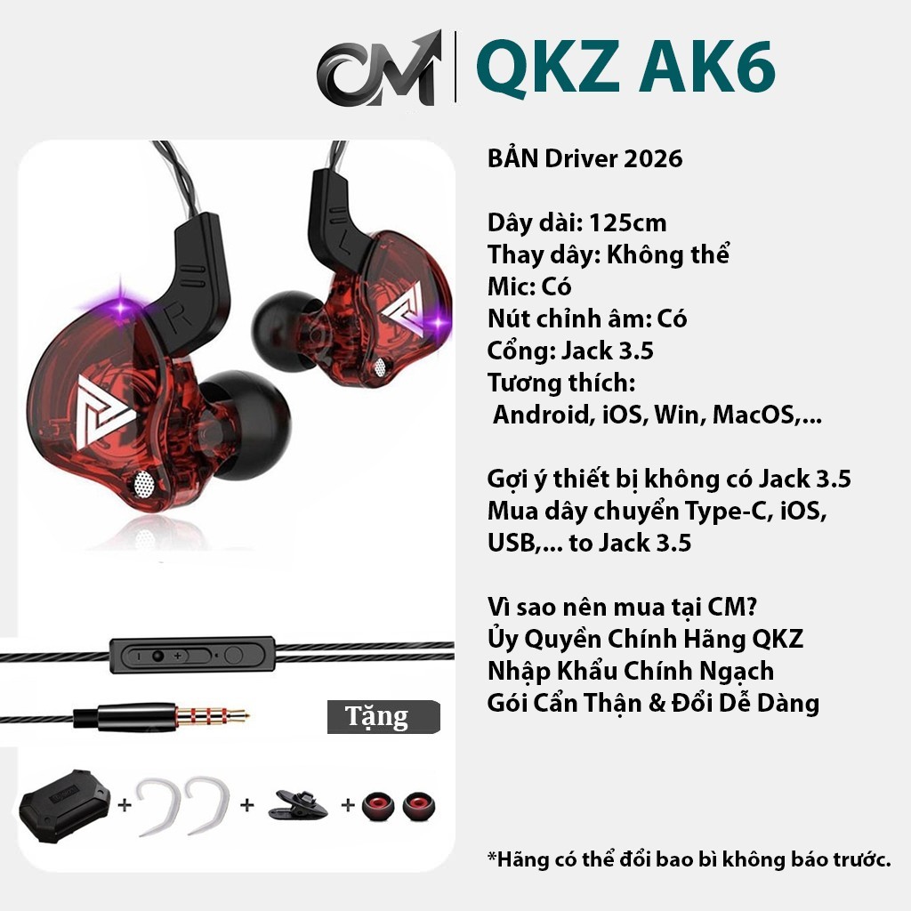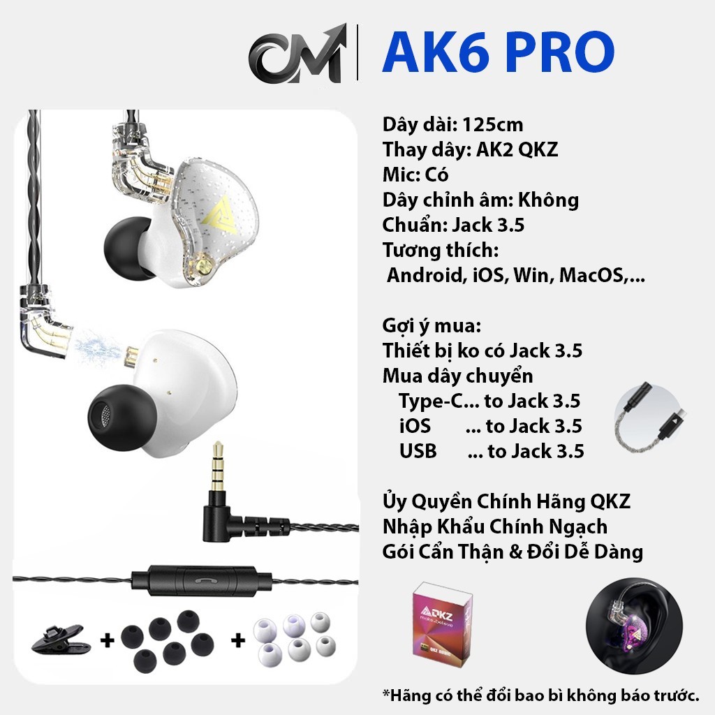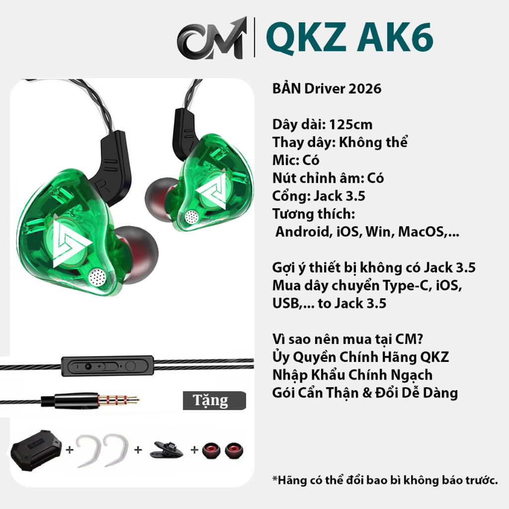 Tai Nghe Nhét Tai QKZ AK6 (Có Mic, Loa Trầm, Bass Mạnh, Kết nối điện thoại & pc, Tặng kèm hộp hộp, Dây chống rối...)