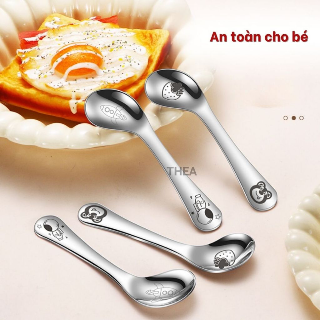 Thìa inox 316 ăn dặm cho bé, muỗng inox 316 cao cấp ăn dặm cho bé, muỗng tập ăn cho bé dễ thương - THEA