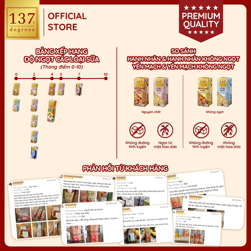 [COMBO 5 HỘP 1L] Sữa Siêu Hạt 137 Degrees Không Đường, Không Ngọt, Nhập Khẩu Thái Lan, Dinh Dưỡng