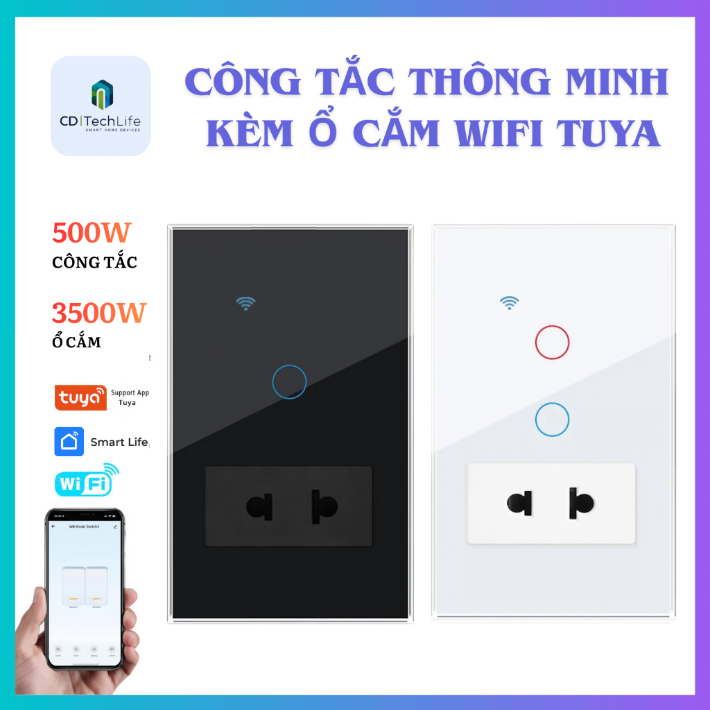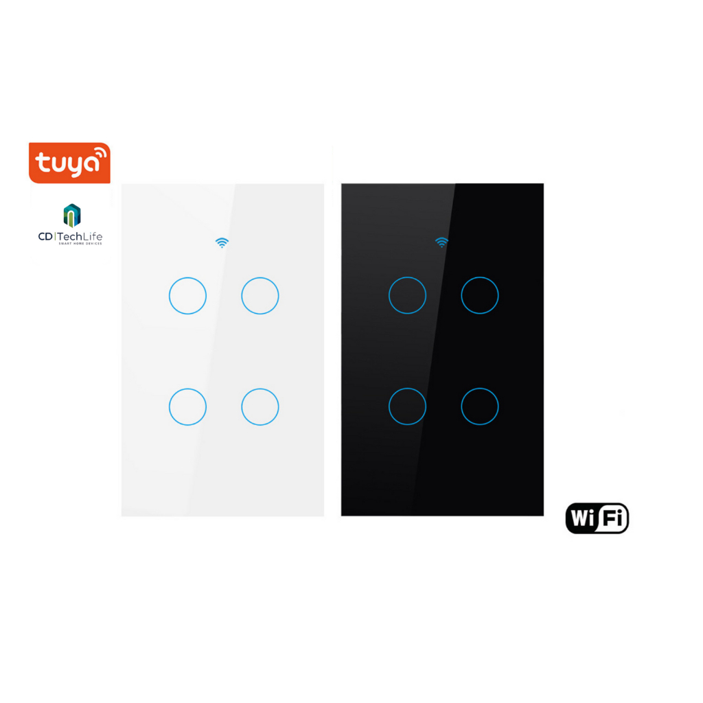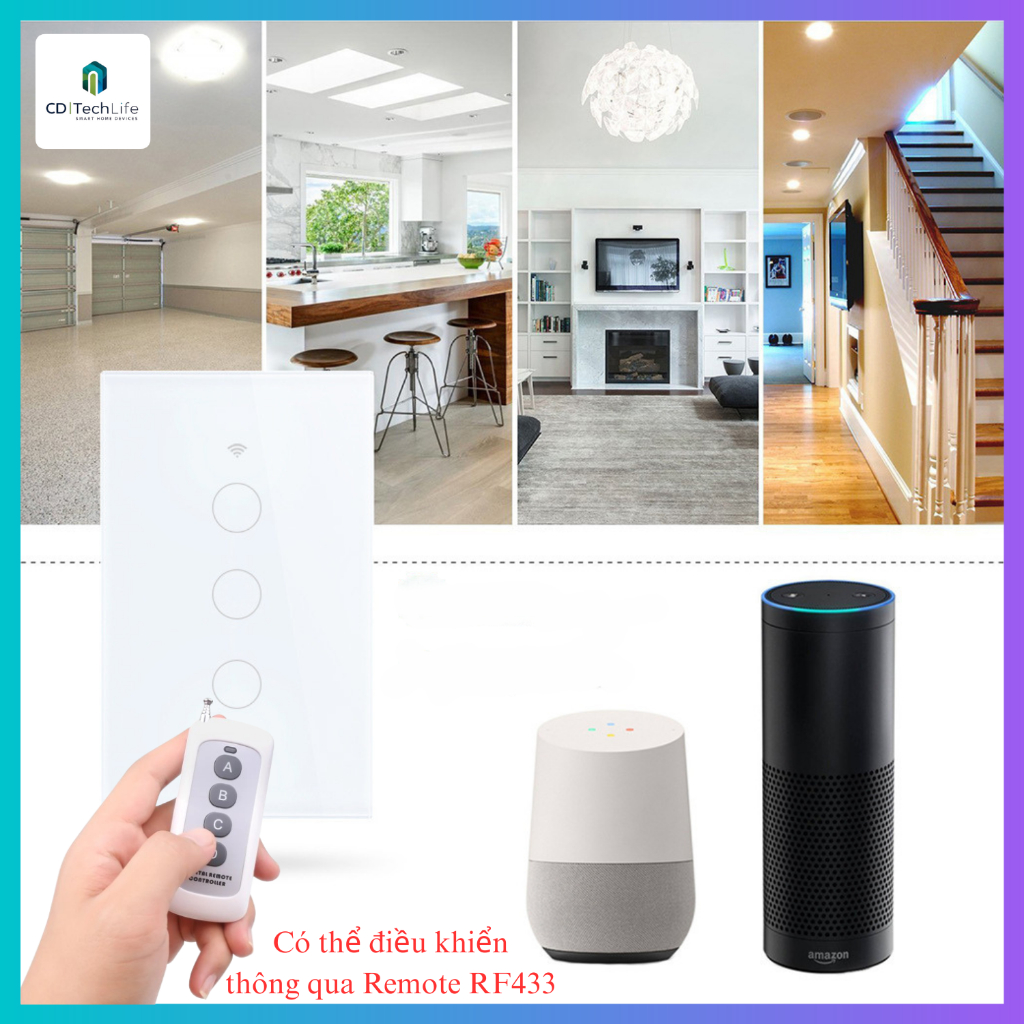 Công tắc thông minh Wifi + RF433, mặt kính cảm ứng, không viền Tuya 1,2,3,4 nút ấn