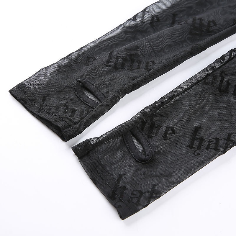 Áo thun lưới TODOBLACK tay dài cổ tròn xuyên thấu in chữ thời trang quyến rũ cho nữ
