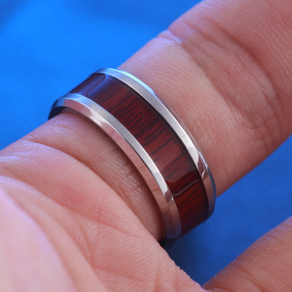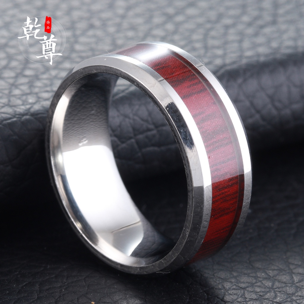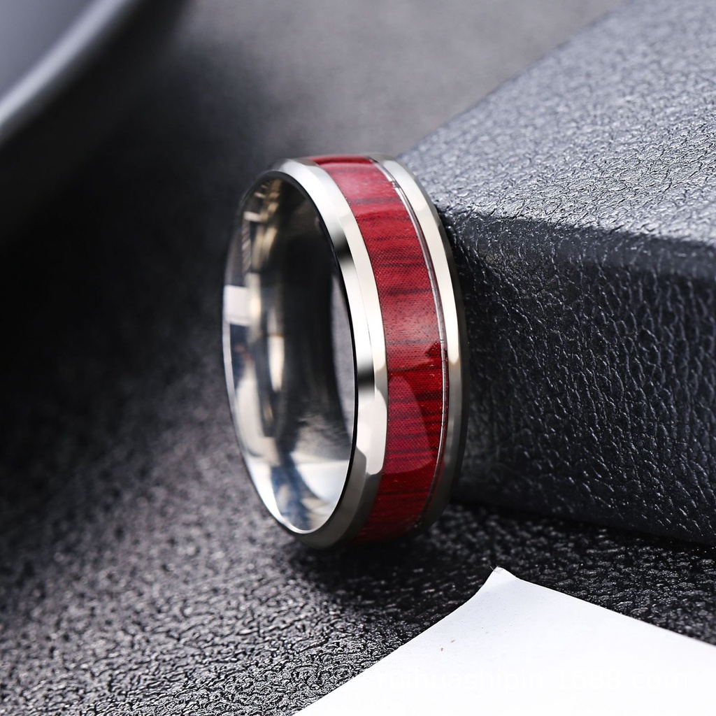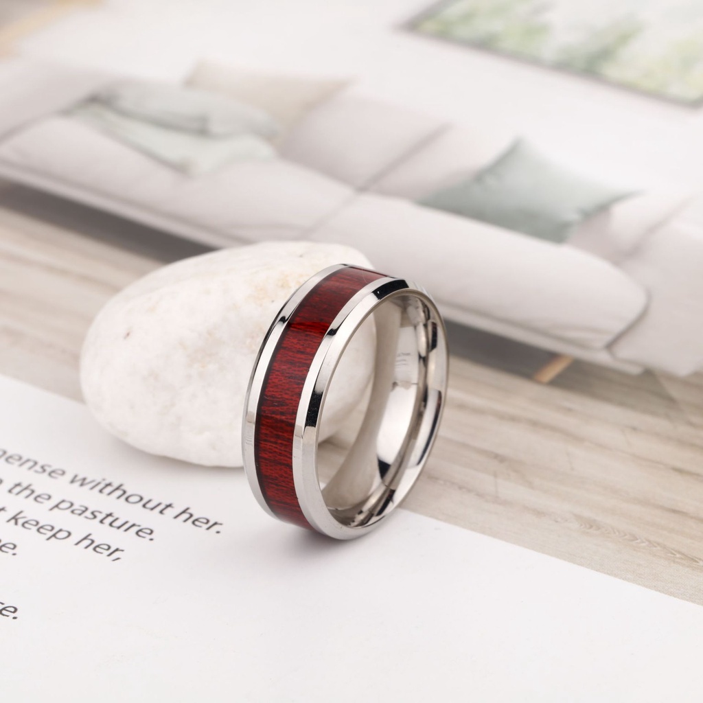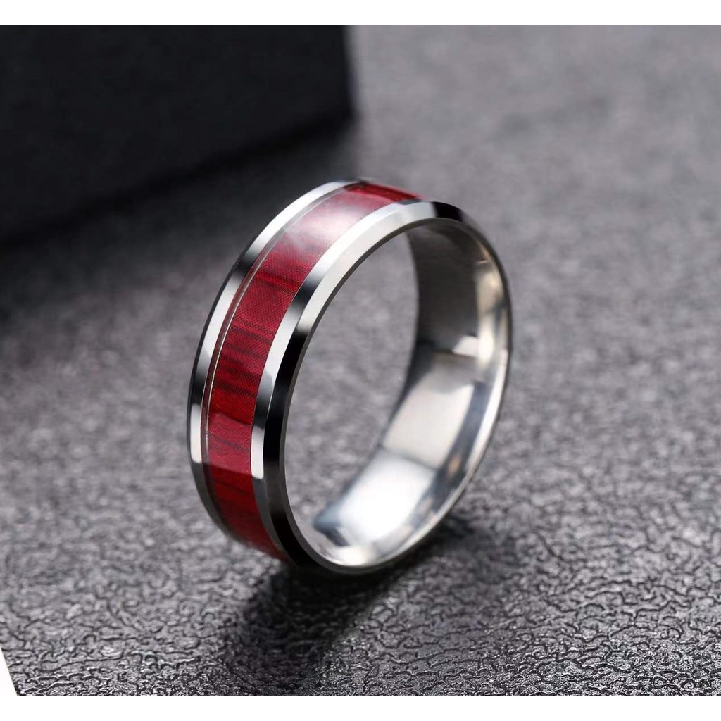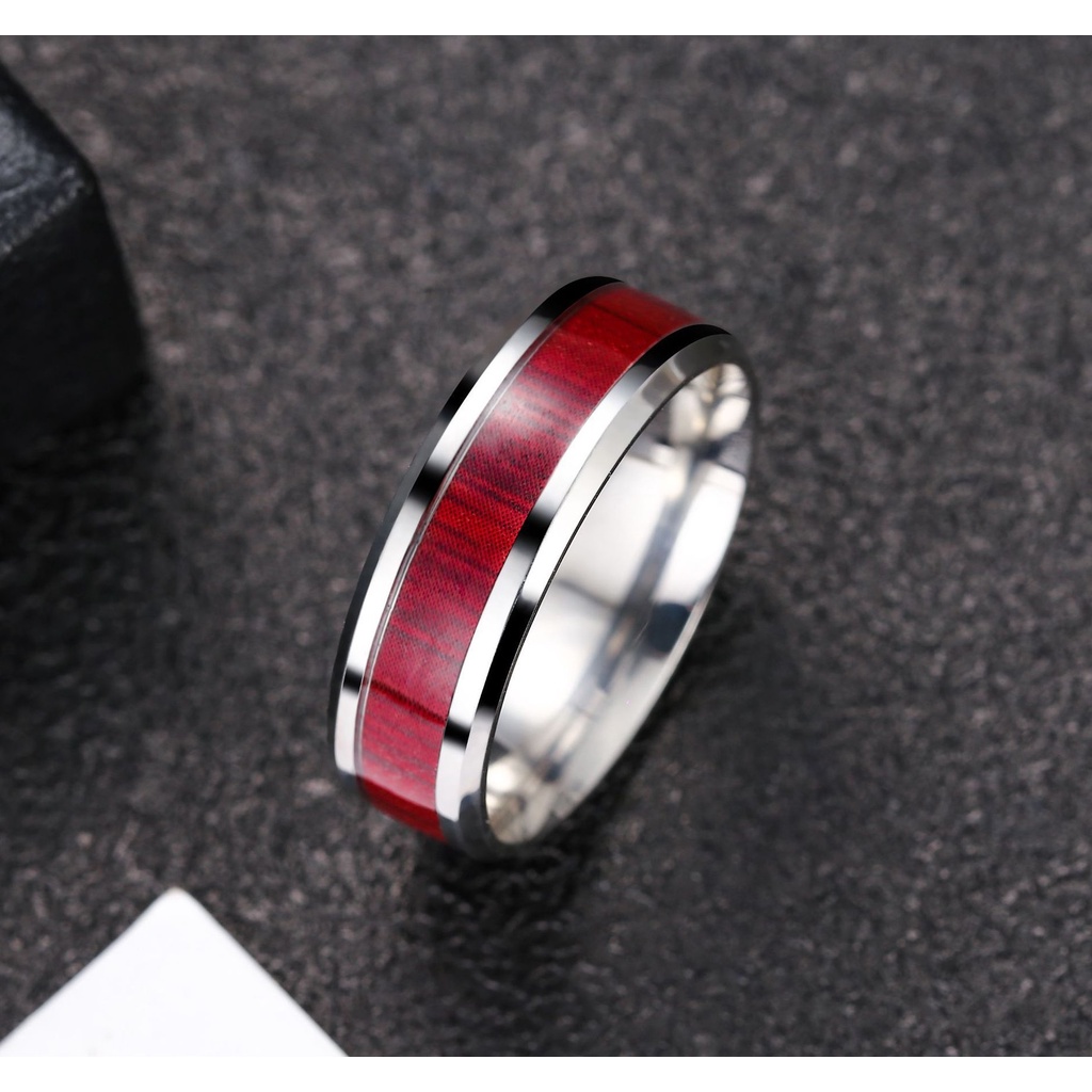 Nhẫn nam nữ tròn Unisex màu bạc đỏ Thời trang PUN chất liệu Titan đẹp đơn giản - Nhẫn Red Wood