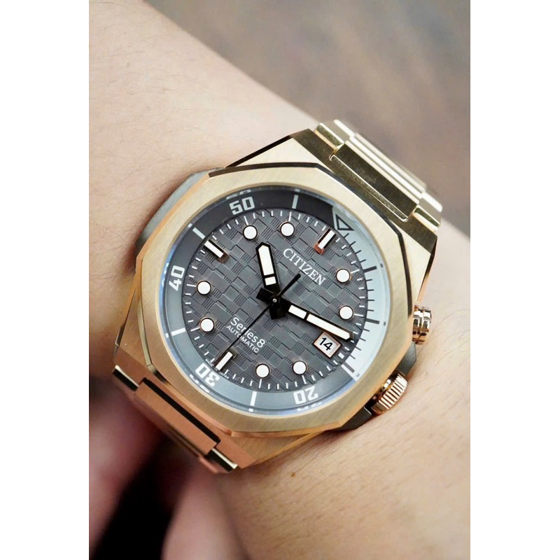 ĐỒNG HỒ NAM CHÍNH HÃNG Citizen NB6069-53H Automatic Grey Dial Sapphire Series 8 890 Mechanical Gold Case Stainless Steel