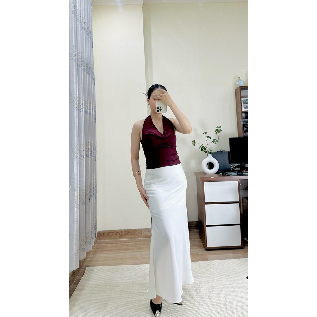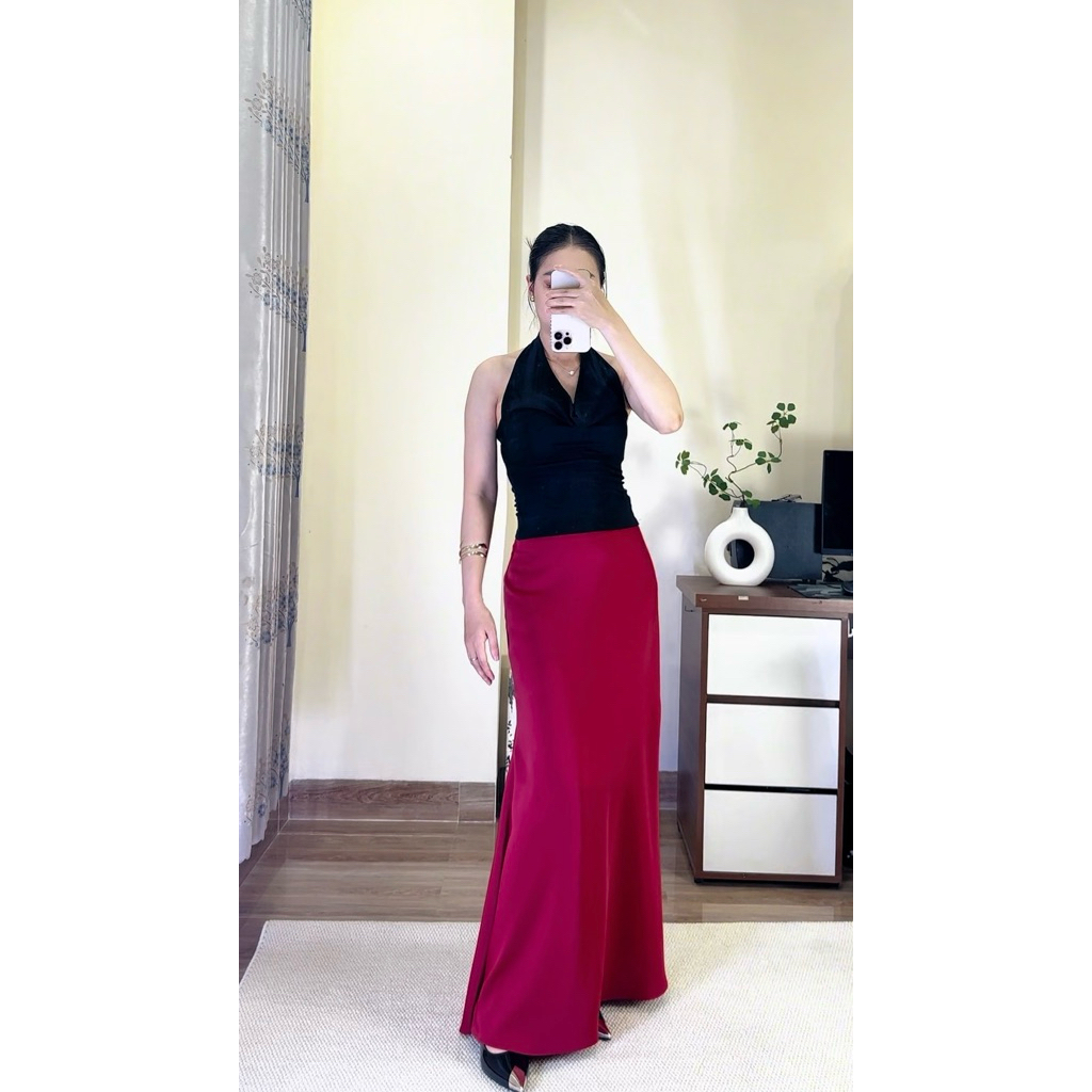 Chân Váy Lụa Dáng đuôi cá Dài 92cm - Chất lụa vân gỗ mềm mát dày dặn may 1 lớp cho phong cách thời trang nữ