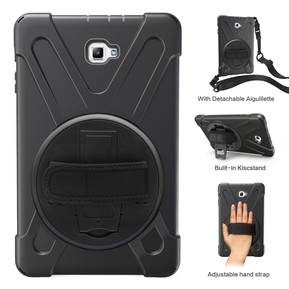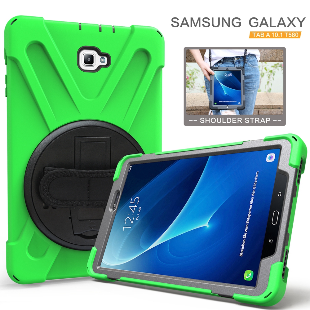 Ốp lưng Samsung Galaxy Tab A 10.1 2016 T580 T585 P580 P585 Ốp lưng PC chống sốc an toàn cho trẻ em + Silicon 2 trong 1 Dây đeo tay có dây đeo vai Vỏ bọc
