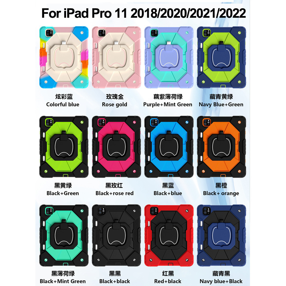 Dành Cho Apple iPad Pro 11 2018 2020 2021 2022 A1980 A2013 A2068 A2228 A2377 A2459 A2759 A2435 A2761 Ốp Lưng Silicon PC Kéo Vòng Đứng Dây Đeo Vai Vỏ Máy Tính Bảng
