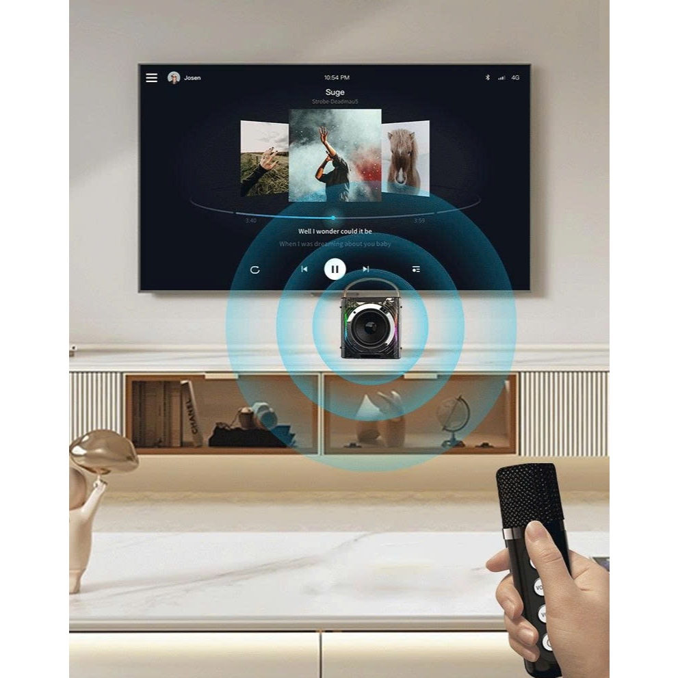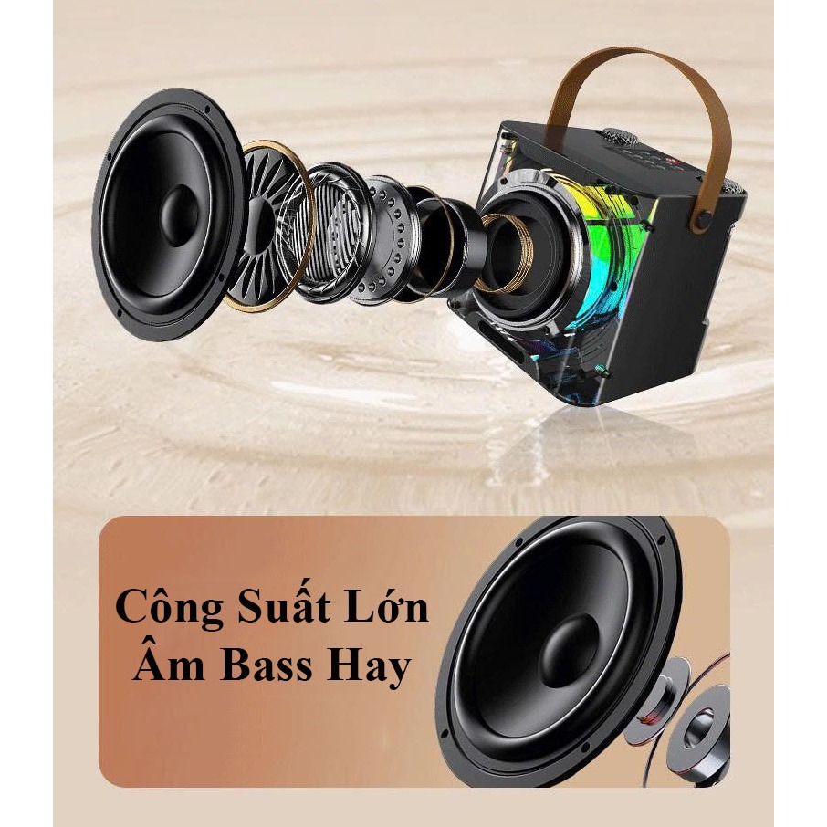 Loa Bluetooth A829 công suất mạnh, 2 micro không dây, bass lực, phù hợp picnic, sự kiện
