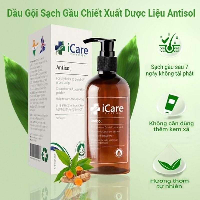 Dầu Gội iCare Pharma Antisol Dược Liệu PH 6.5 Giúp Làm Sạch Gàu, Giảm Ngứa 240ml